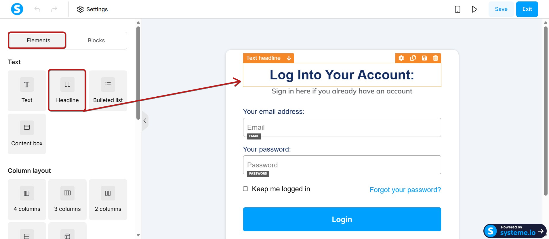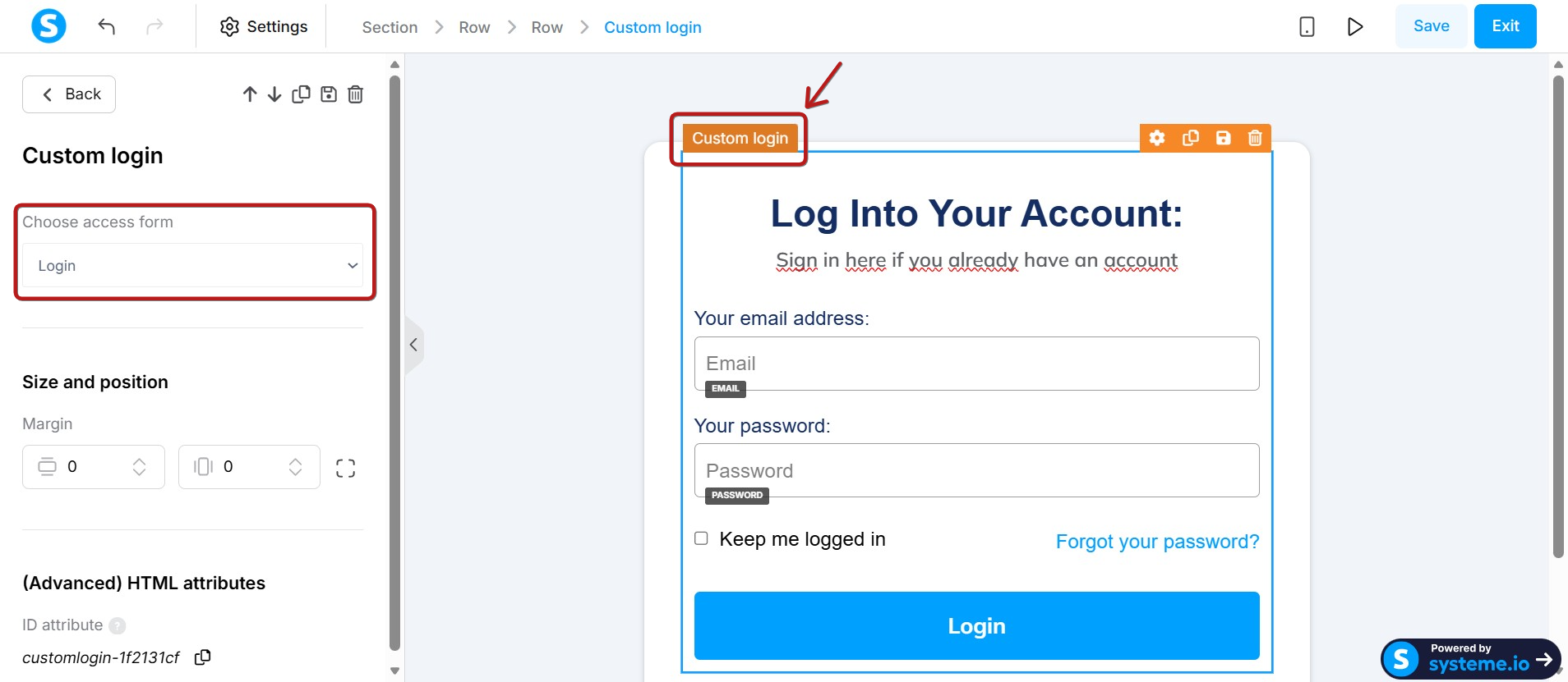 Once you're in the page editor, customize your login page as required.