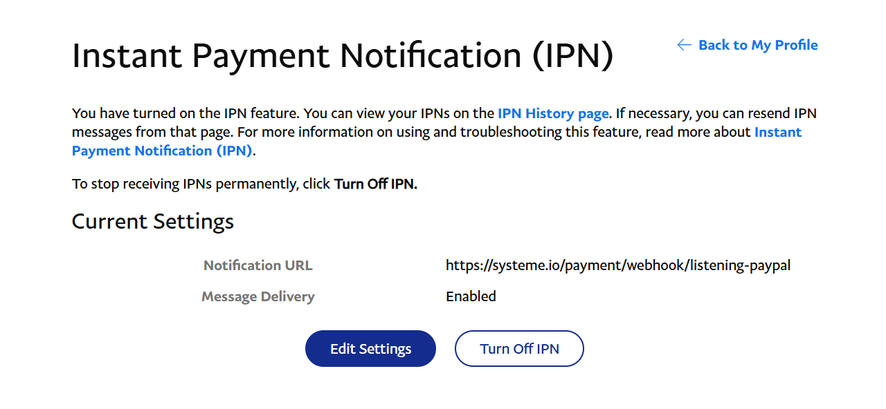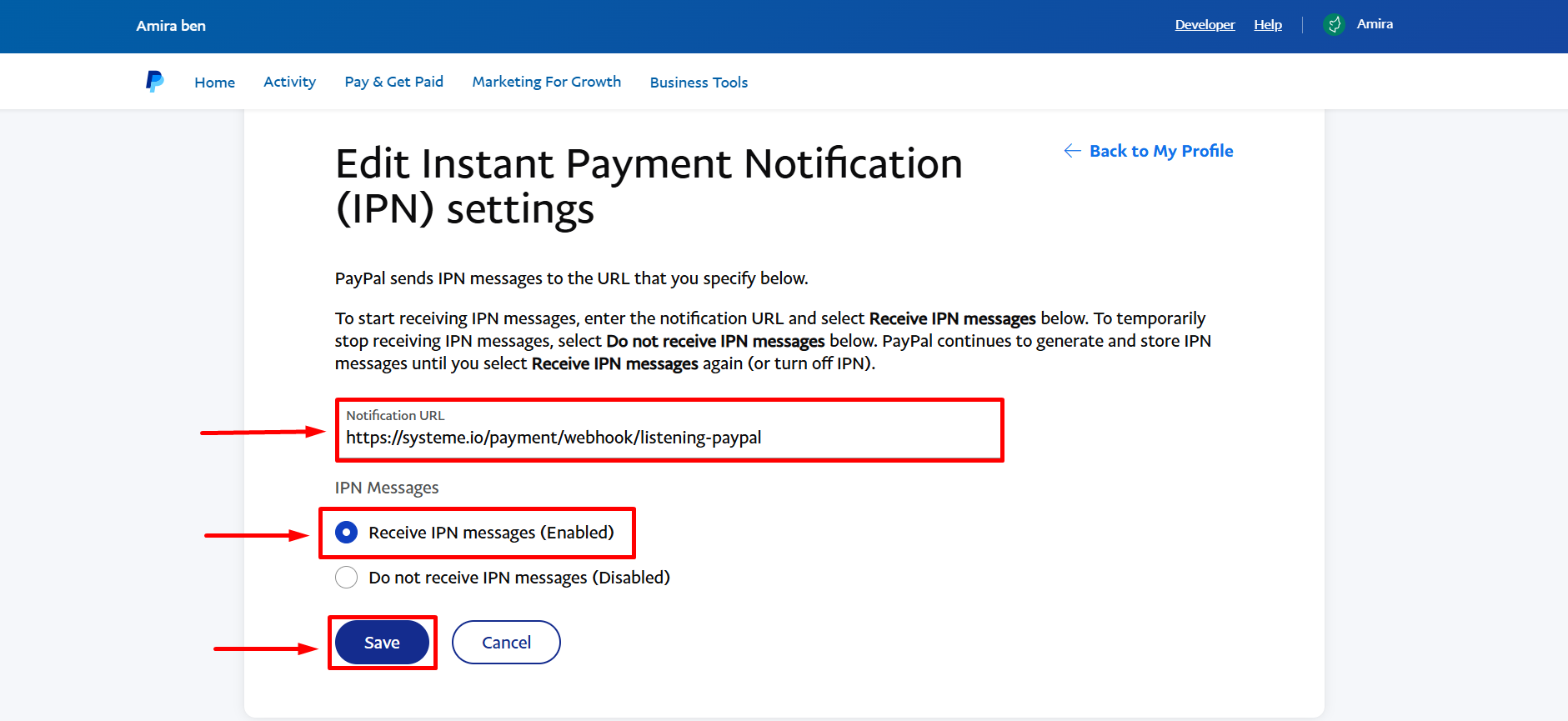 Step 2: Configuring PayPal IPNs to receive notifications in systeme.io