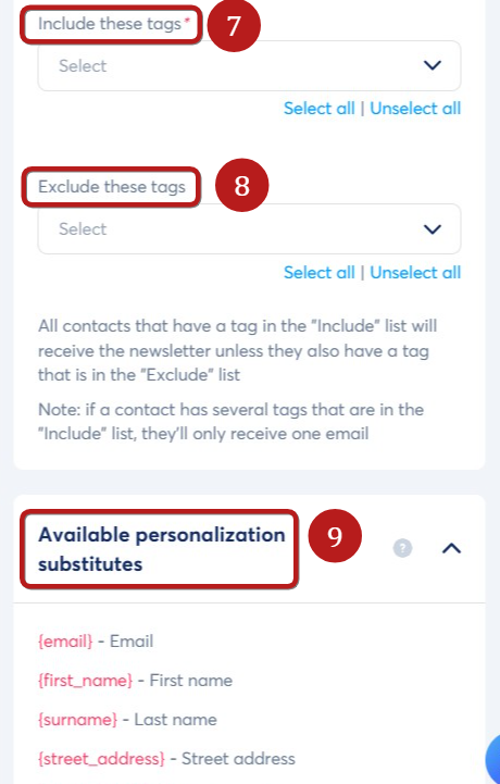 - Send the newsletter to contacts who have been assigned a specific tag