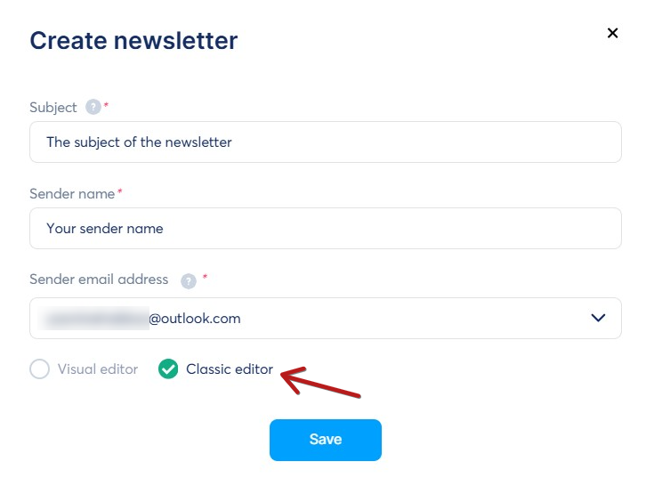 - Choose Classic Editor during newsletter creation.