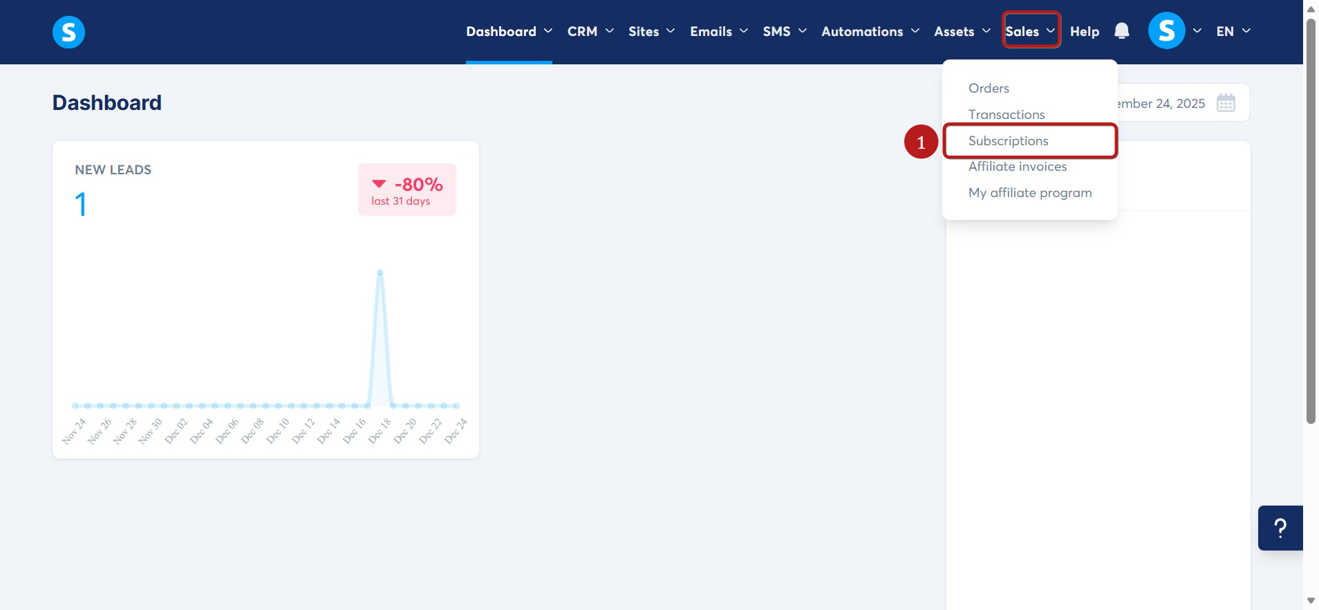 Go to Sales and click Subscriptions (2).