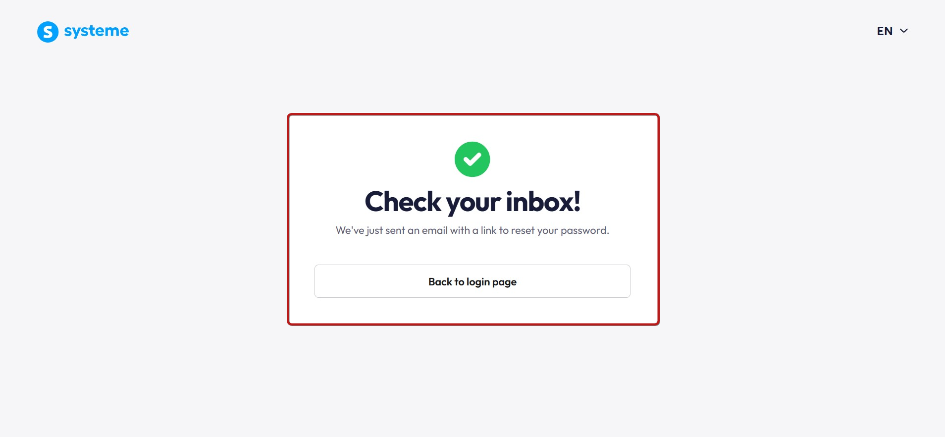 Note: If your client has a systeme.io account, you can follow the same process. Simply enter the email address linked to their account, and they’ll receive an email with a link to reset their password.