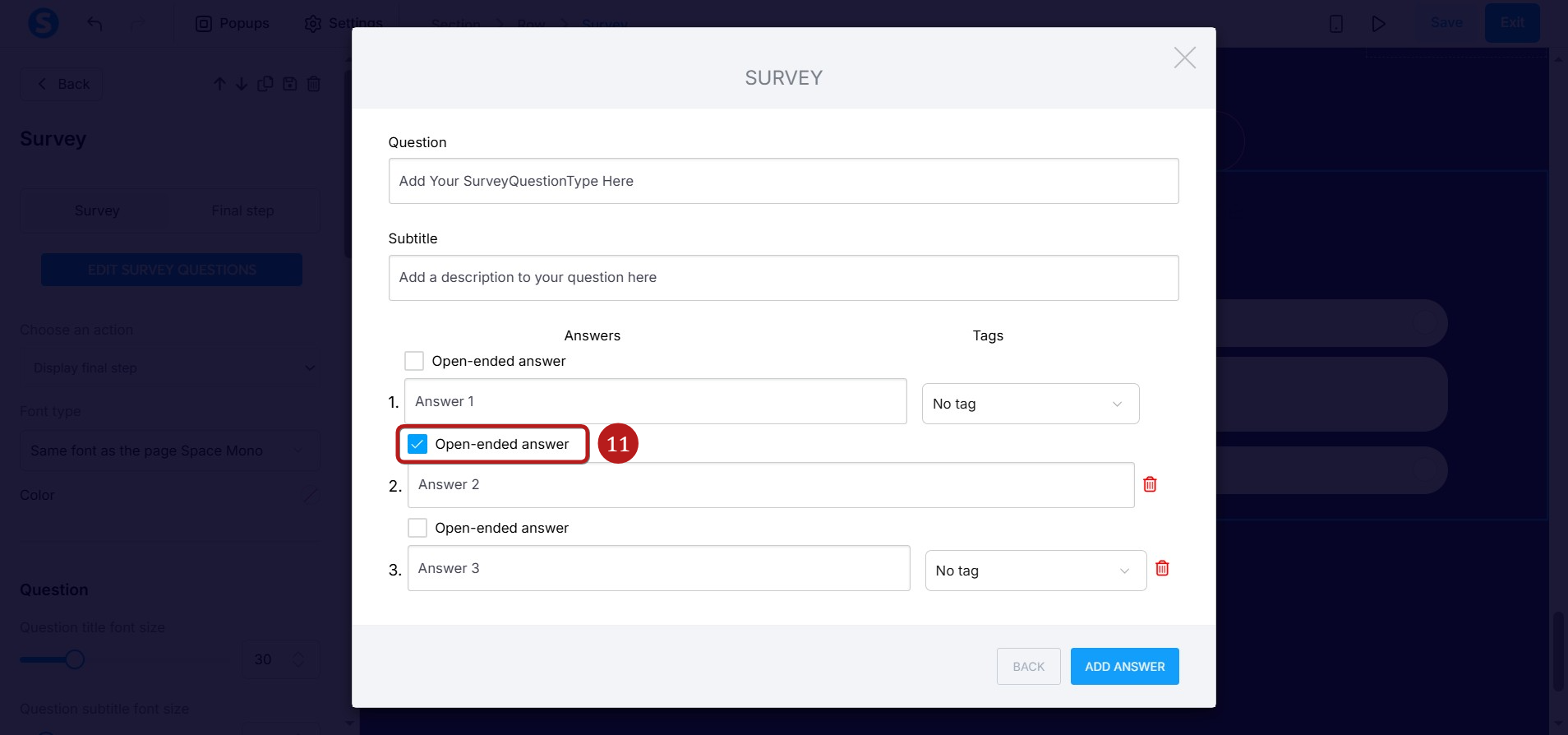 You can also allow respondents to submit a free-form answer to a question by checking the Open-ended answer checkbox (11).