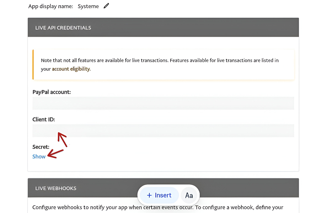 - In the Add PayPal credentials popup, enter your Client ID and Secret
