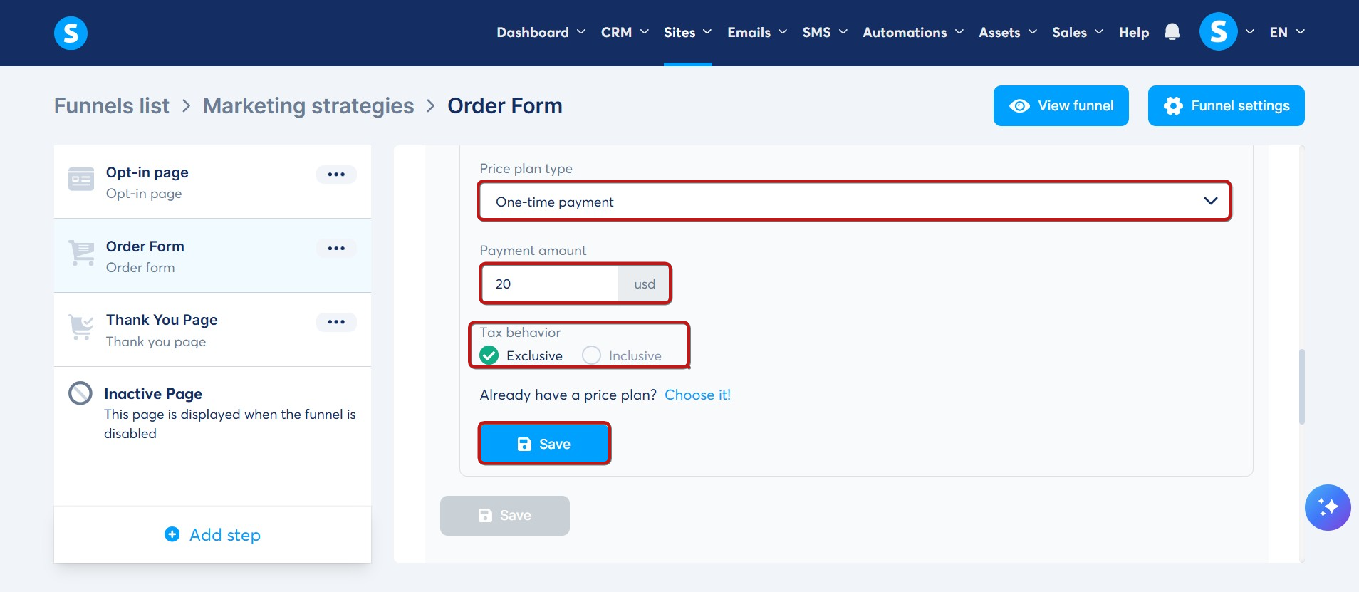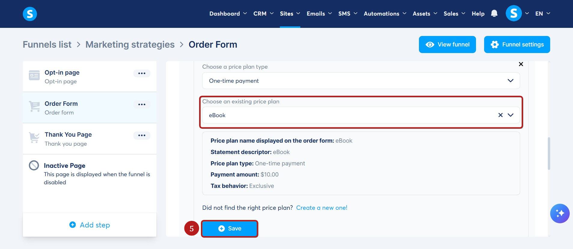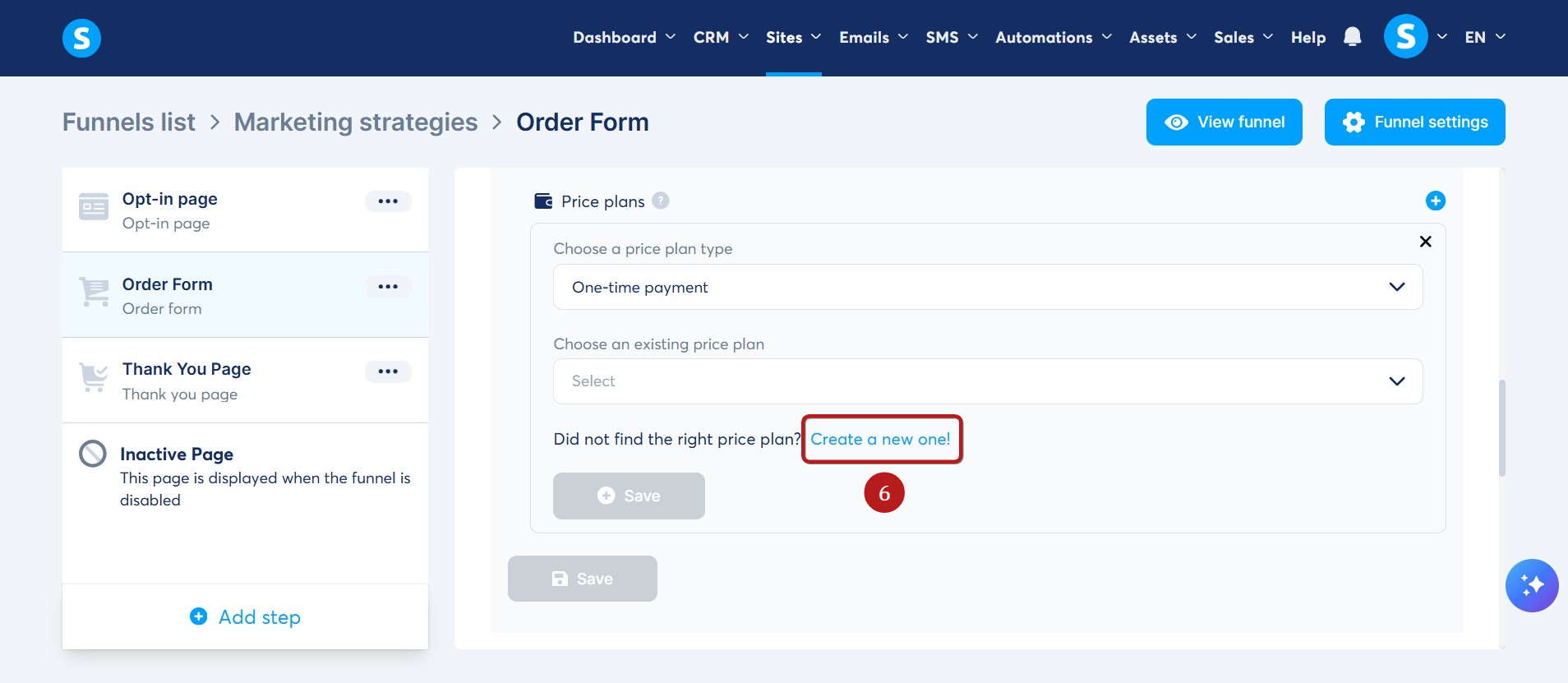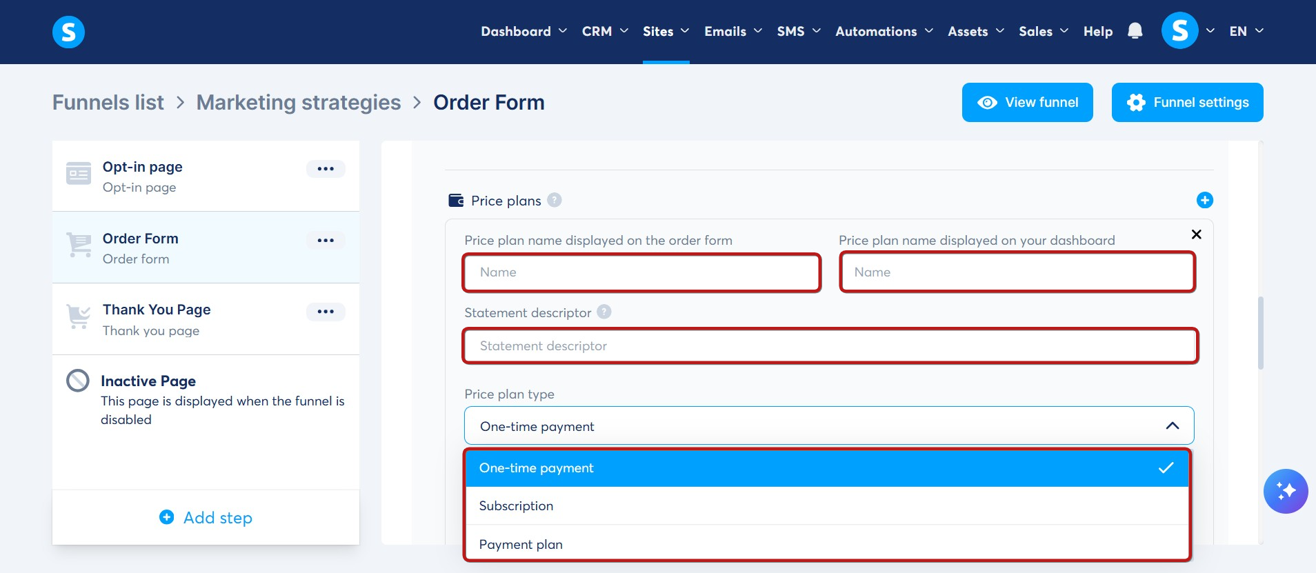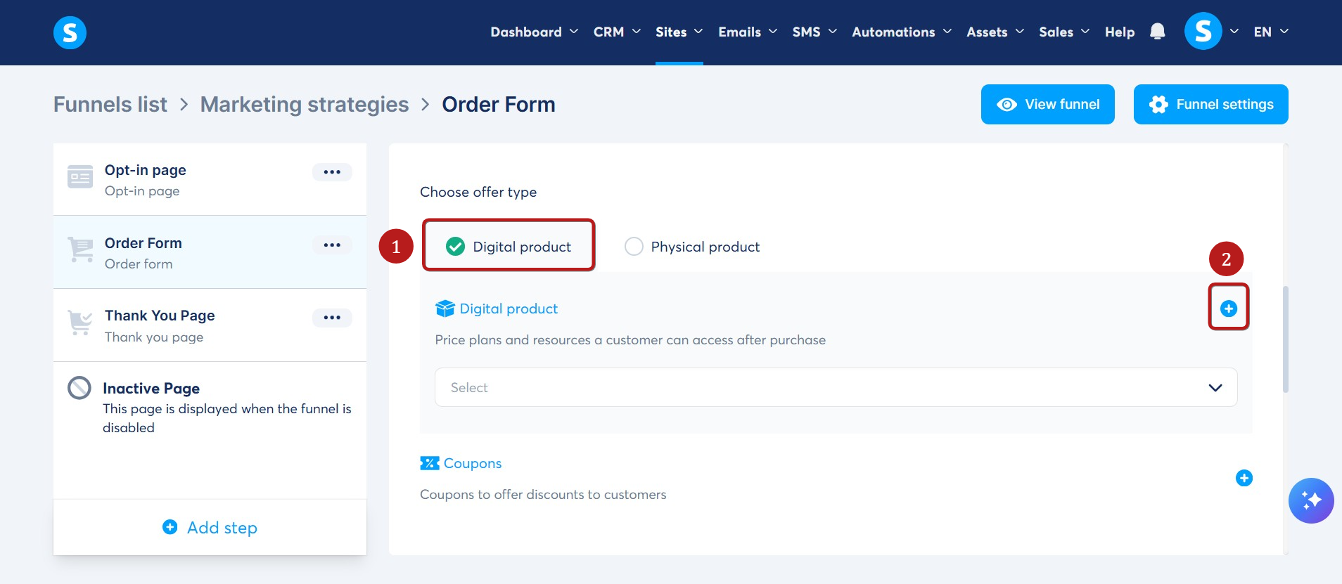 To create a price plan for your digital offer, click on your Order Form. Next, select Digital product (1) from the offer type options.