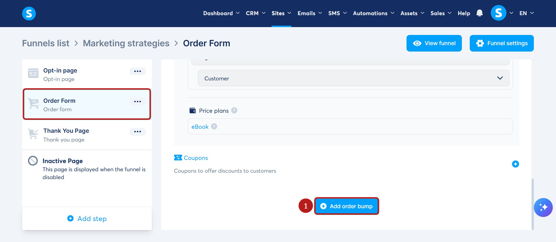 Note: You can also define automation rules to send an email or a campaign after a customer purchases the order bump.