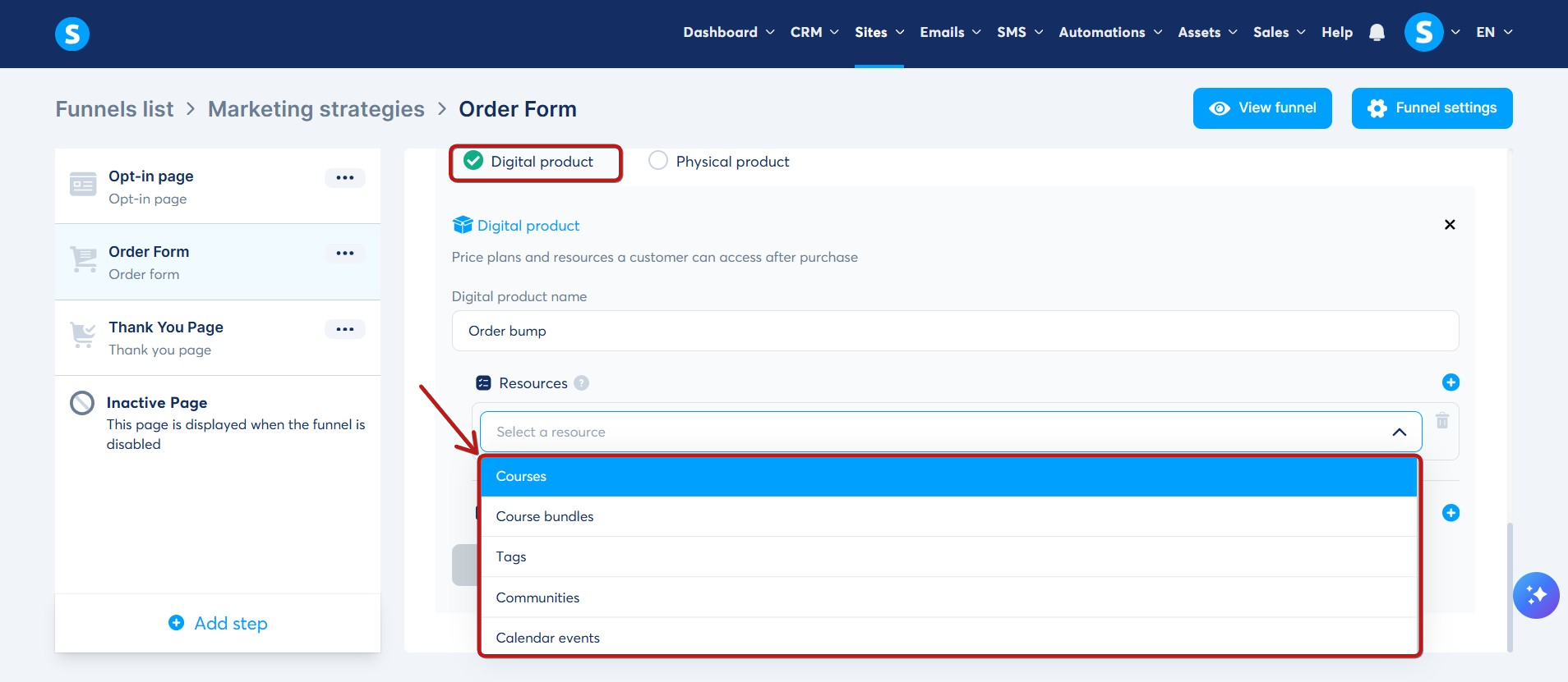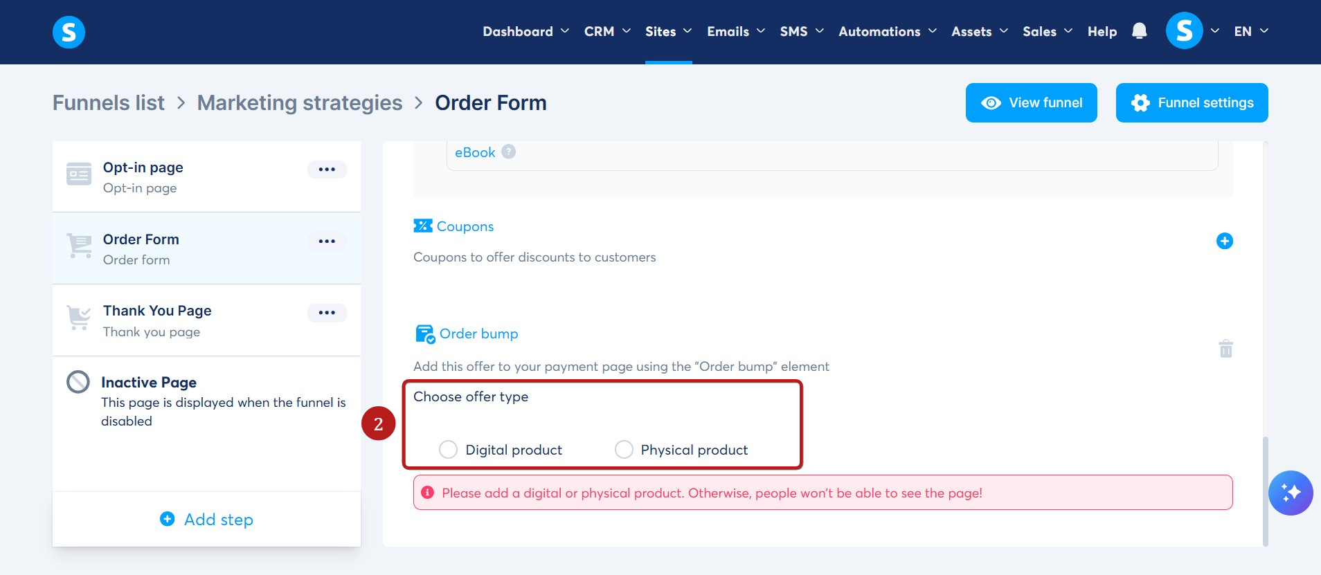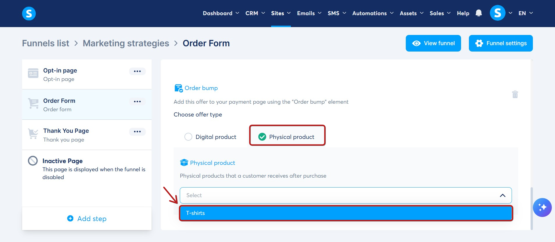 Note: For physical product delivery, you must handle it externally, as systeme.io does not facilitate this process. If you haven't created a physical product yet, refer to this guide on how to do so.