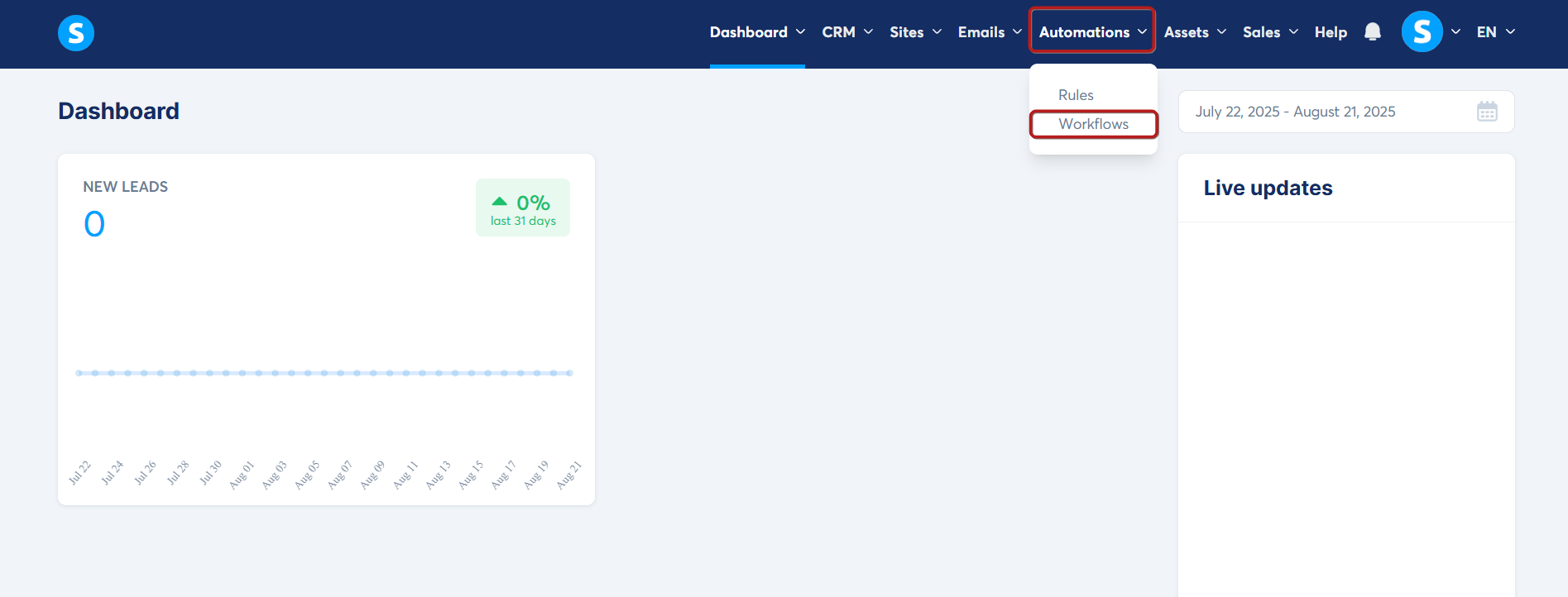 Log in to your systeme.io account, click on the “Automations” tab in the menu bar, then select “Workflows.”