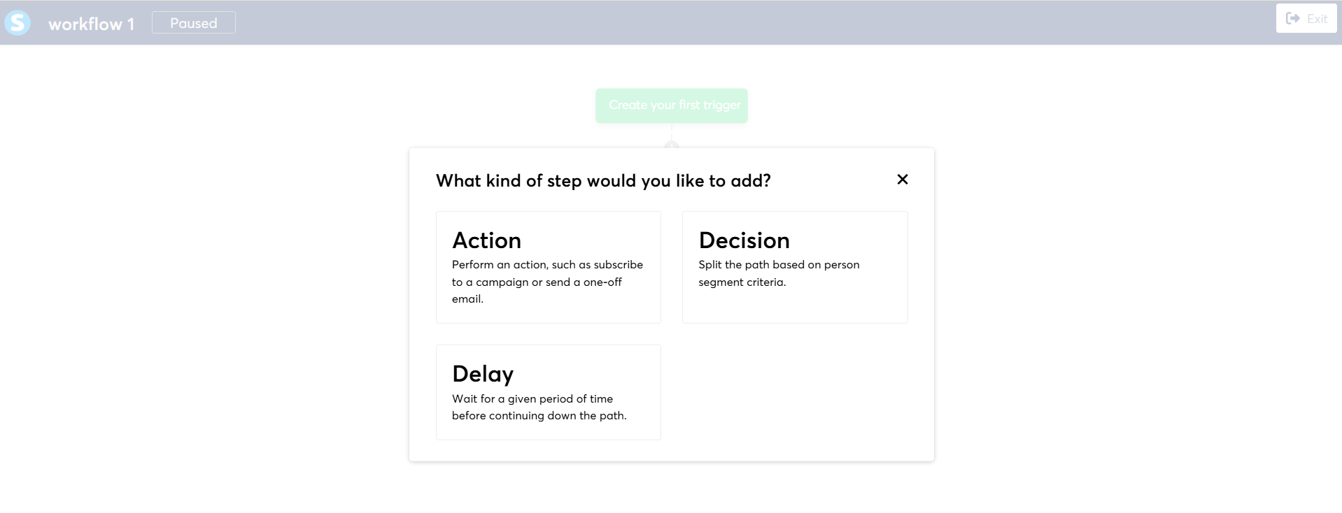 A trigger is an event that starts the workflow — for example, when a user purchases a product or subscribes to your newsletter.