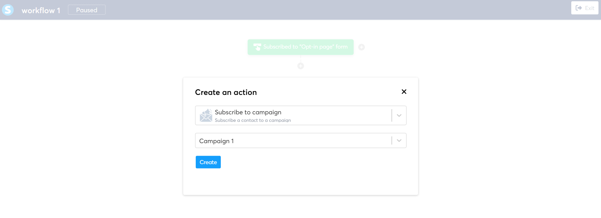 - Add an action: Choose “Subscribe to campaign” and select Campaign 1.