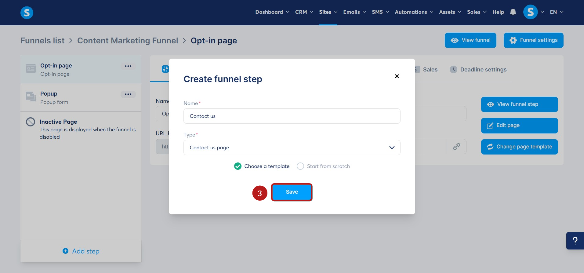 - Name the step, click Choose a template, and then click Save (3).