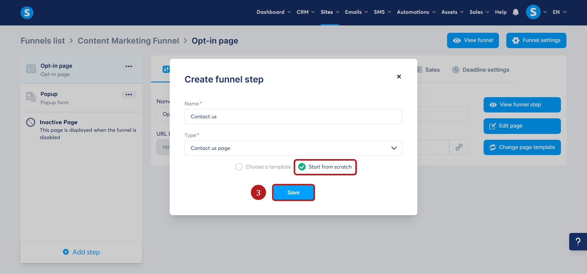 - Name the step, click Start from scratch, and then click Save (3).