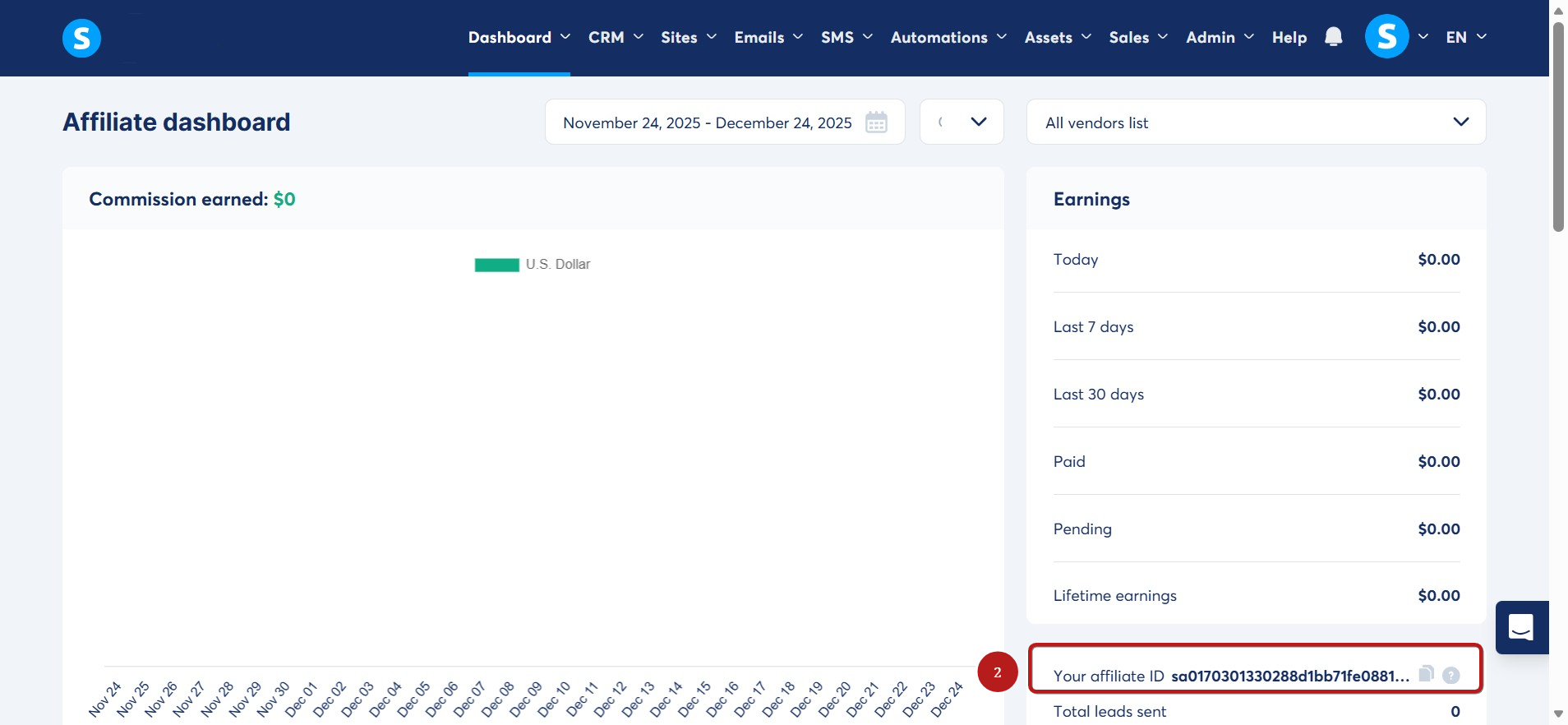 Once you sign up for systeme.io, you automatically join our affiliate program and are given a unique affiliate ID: