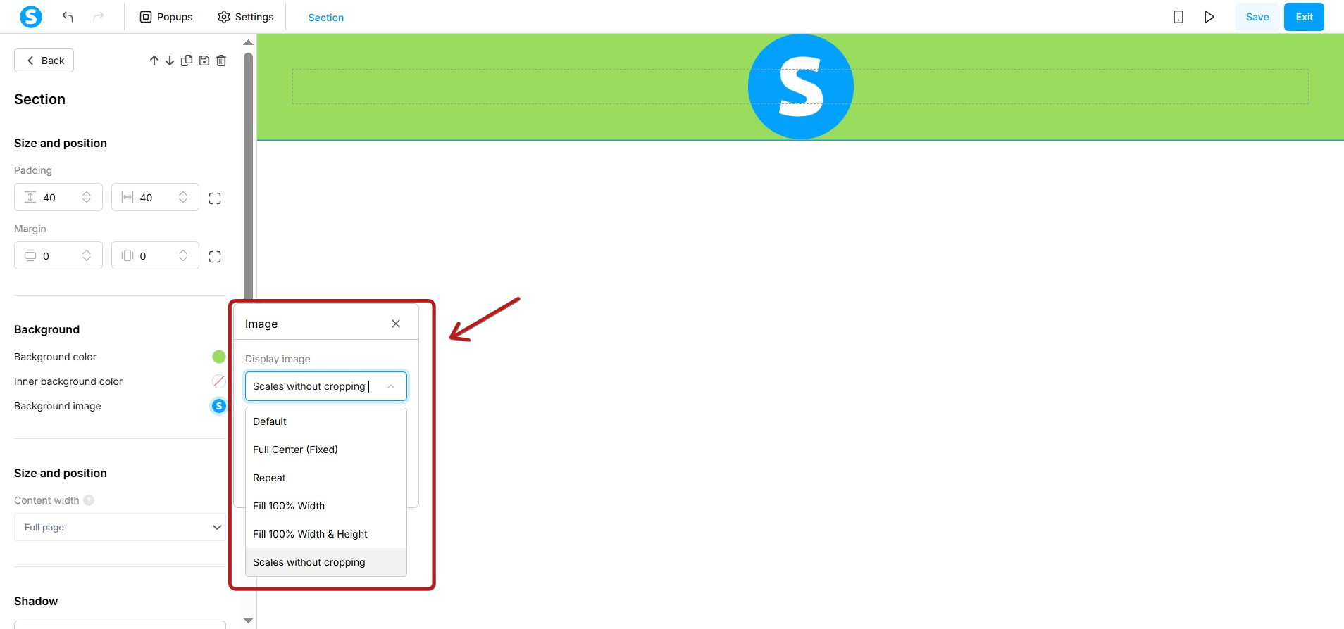 - You also have the option to choose the display mode of the image.