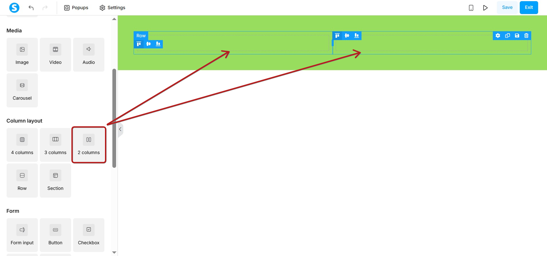 2. Row (column): Columns can be placed in different sections of your page; use columns to adjust the layout of each section on the page.