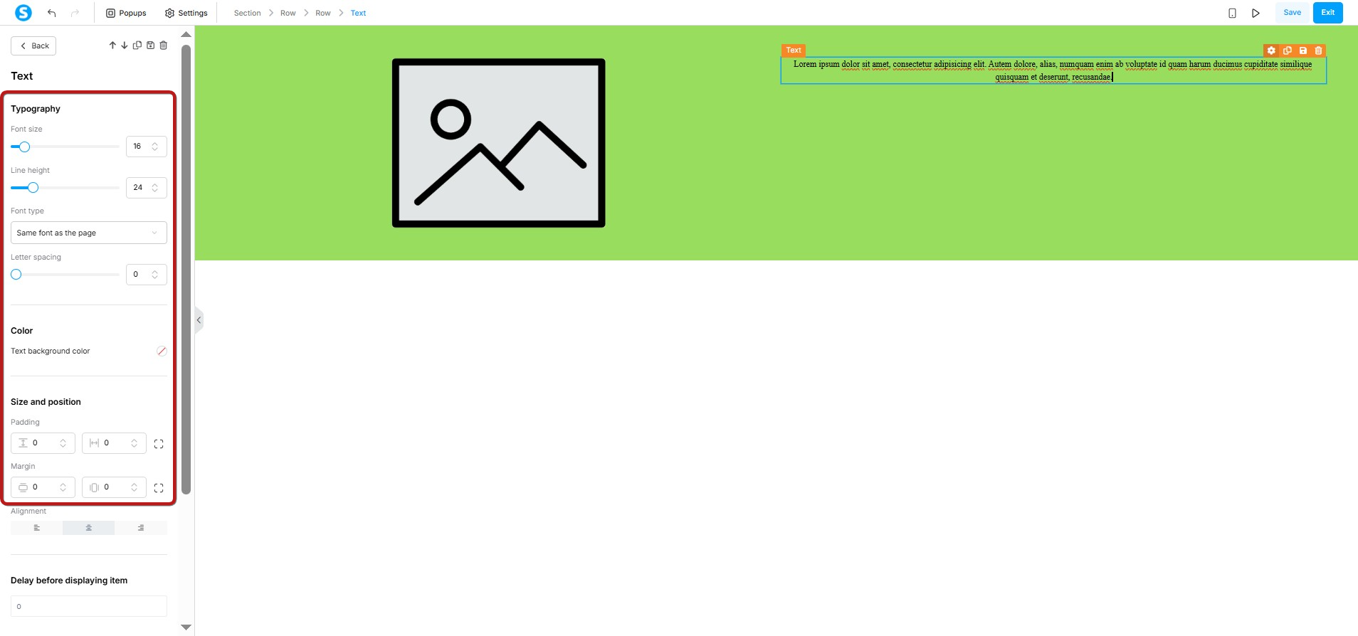 You can adjust your text typography, color, size and position, etc. By clicking on its settings icon.
