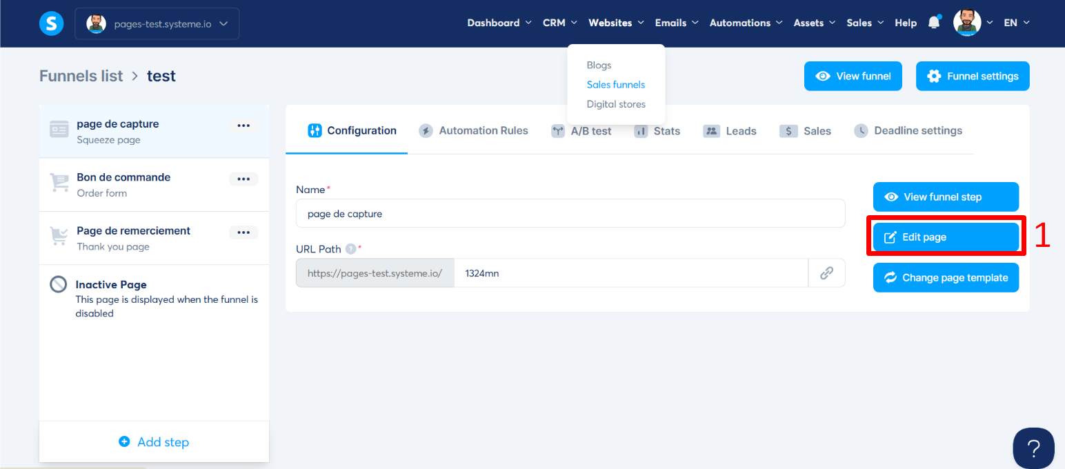 Go to the editor for the page where you want to add a Facebook comment box by clicking. "Edit page" (number 1 in the image)