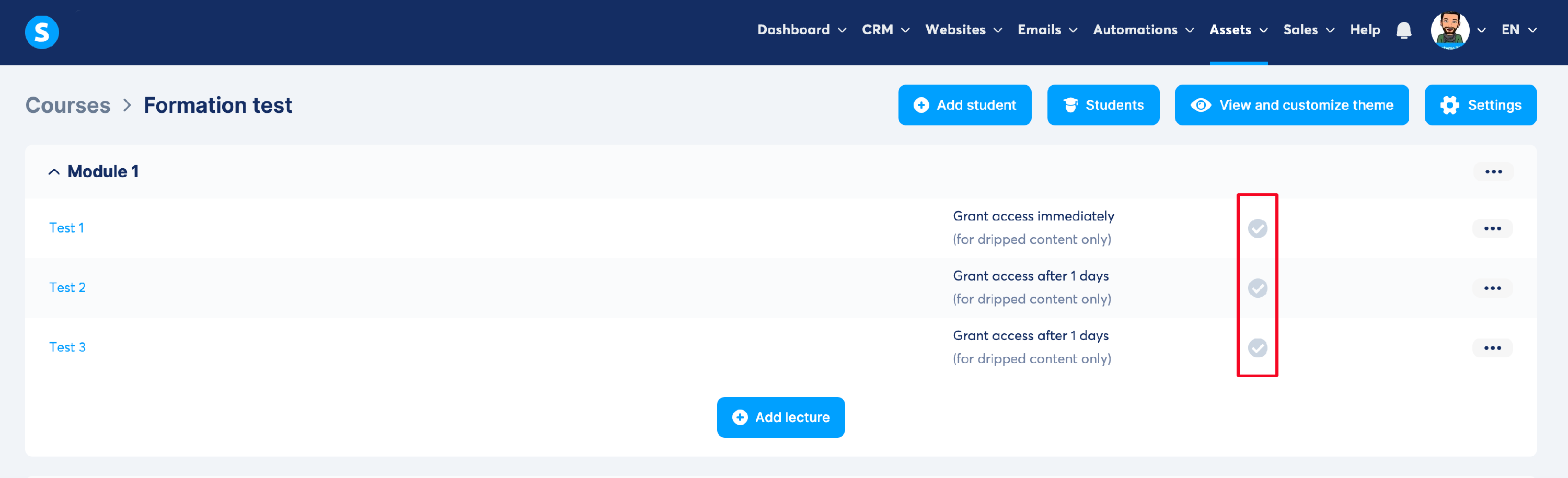 Important: When you create a new lecture, it is automatically saved as a draft. Therefore, you must always remember to "Activate" your new lectures to ensure your students can access them.