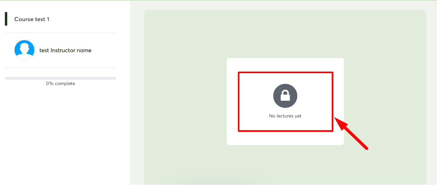 After publishing your lectures, you will no longer see the "No lectures yet" message while previewing your course or when a student accesses your course.