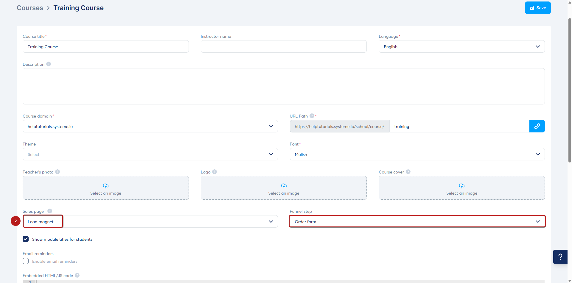 - Unless you define the Sales funnel and Funnel step parameters for your course (see image 2 above), it will not be displayed on the student dashboard.