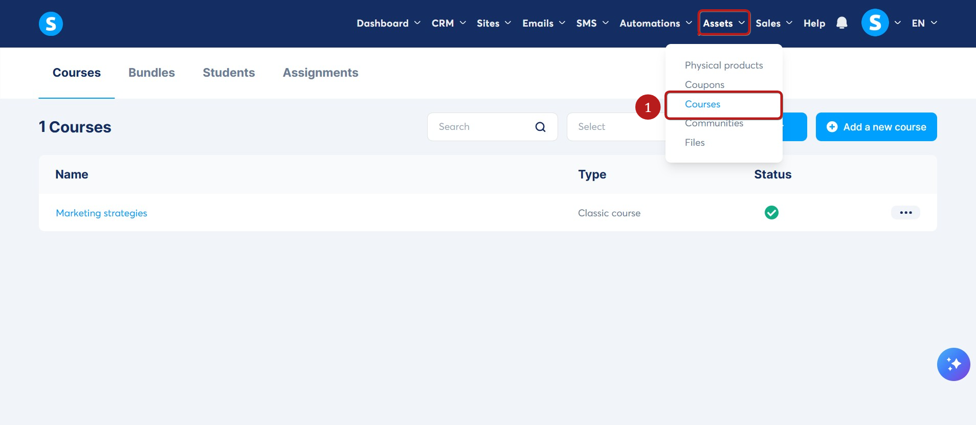 Navigate to Assets, then Courses (1).