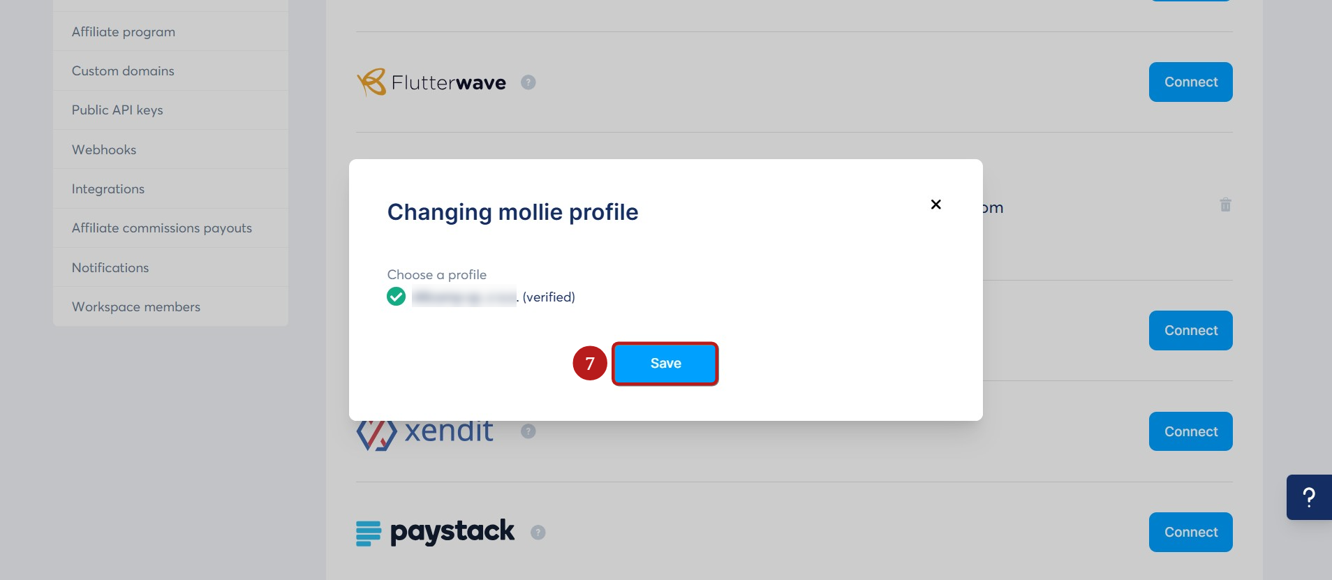 If you have multiple Mollie profiles, you can select which one to use for payments by clicking on Change profile (6) on the payment gateways page.