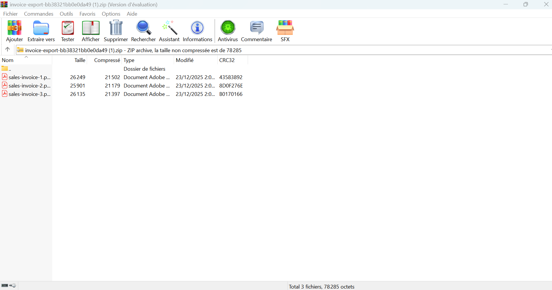 A notification will be displayed at the top of the page informing you that the invoices are being exported and that you will receive an email with the link to download the invoices (4).