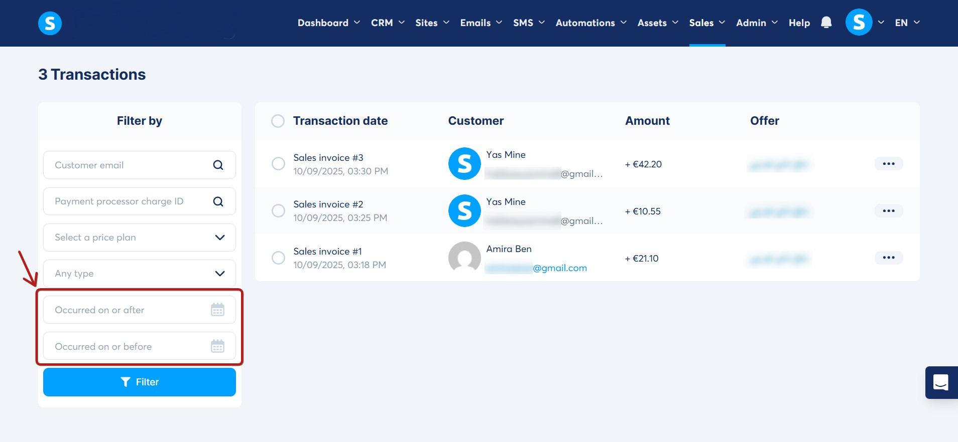 Navigate to the Sales tab, and click on Transactions (1).