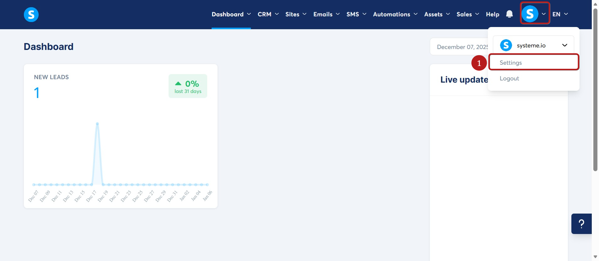 Click on your profile picture, then click on Settings (1).
