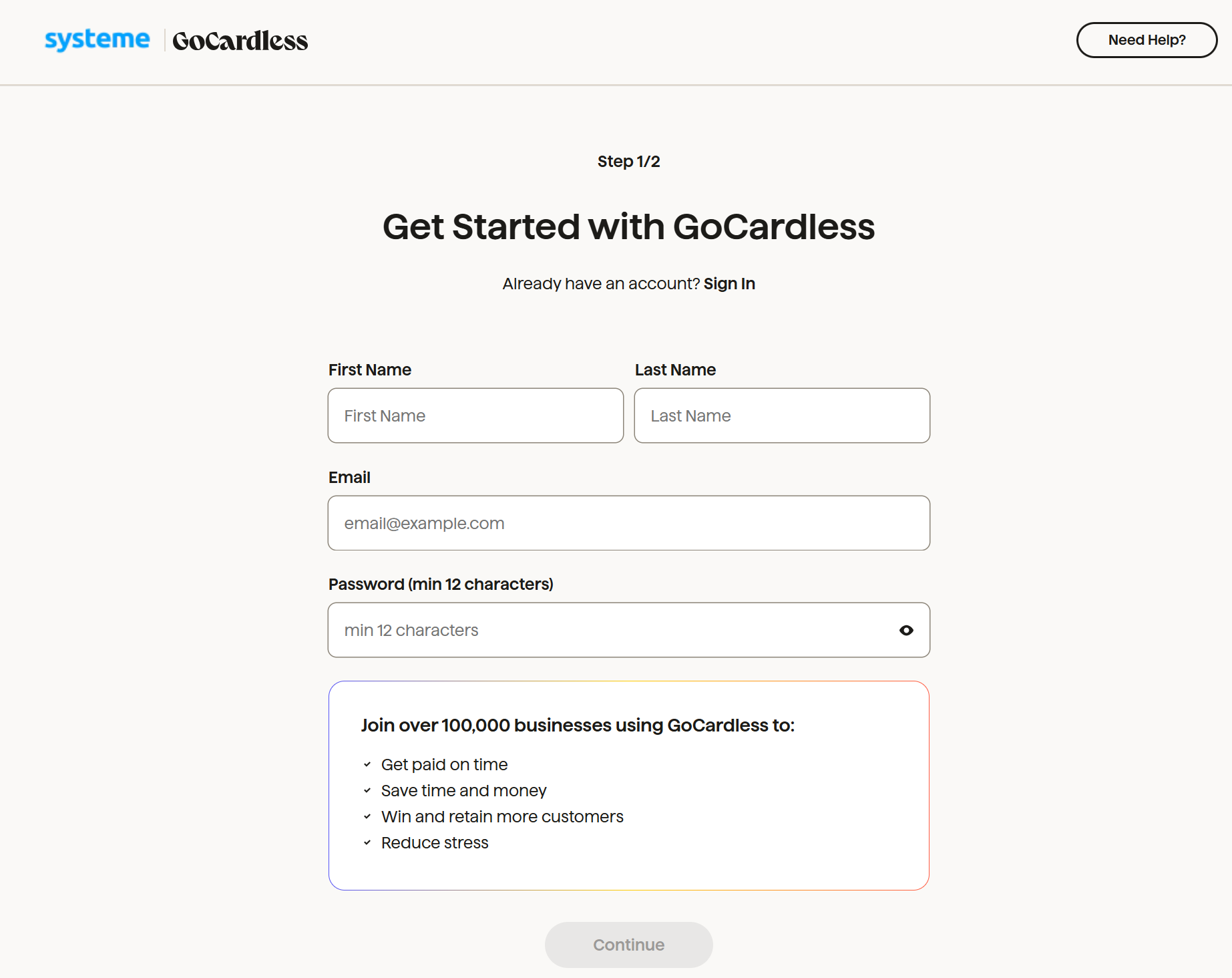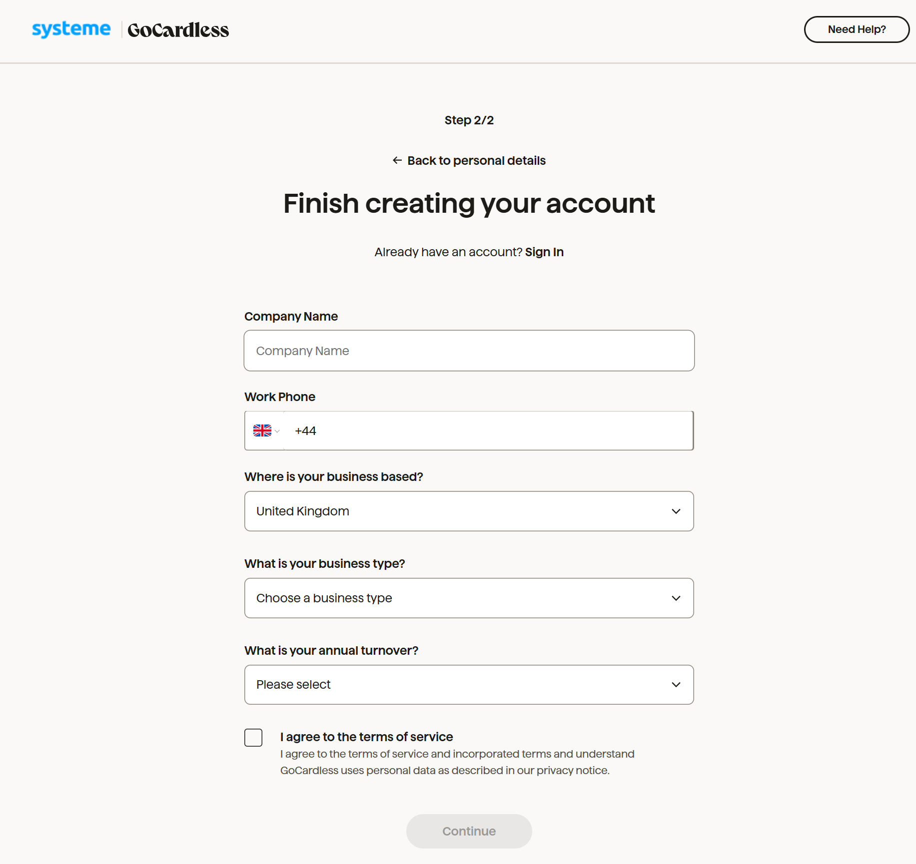 You will be redirected to a page that allows you to log in to your GoCardless account or to create one if you do not already have an account.