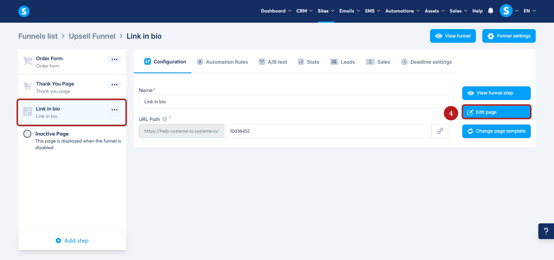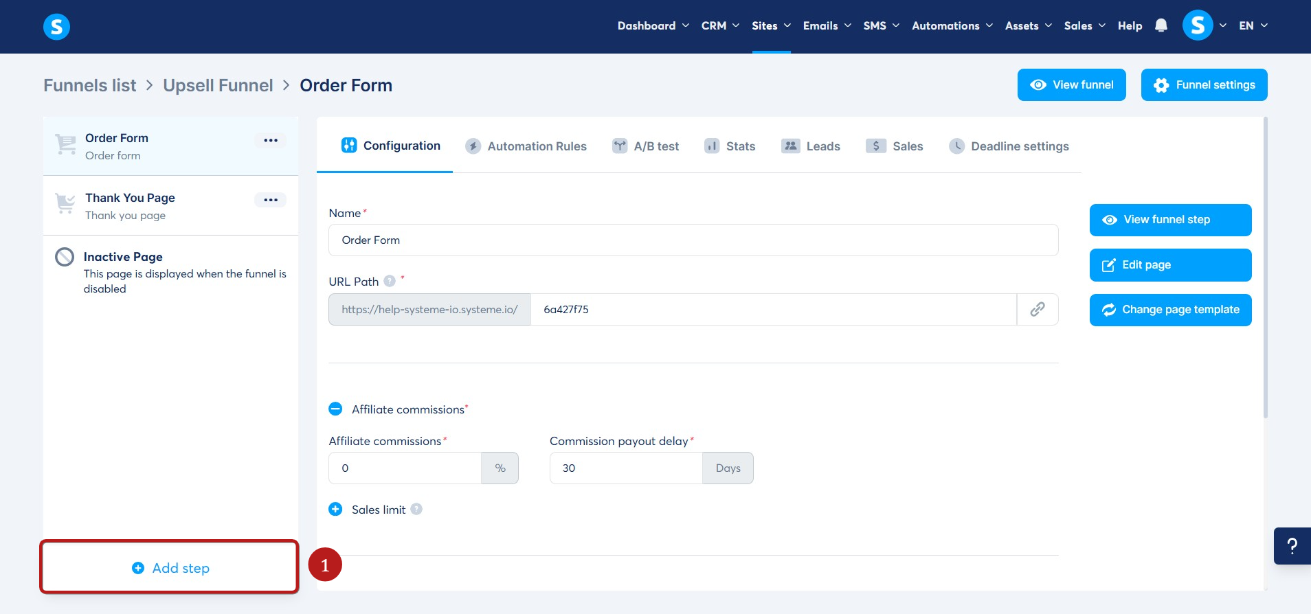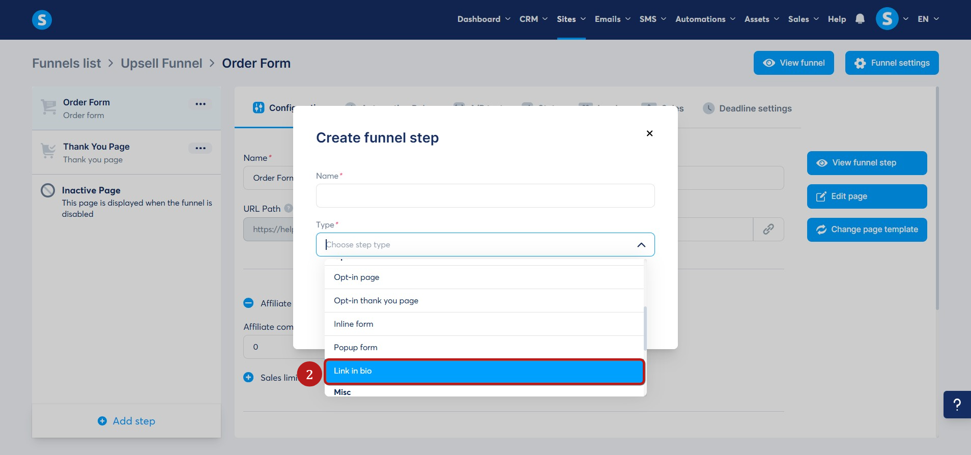 Navigate to the funnel where you want to add the link in bio page. Then, in the left panel, click Add step (1).