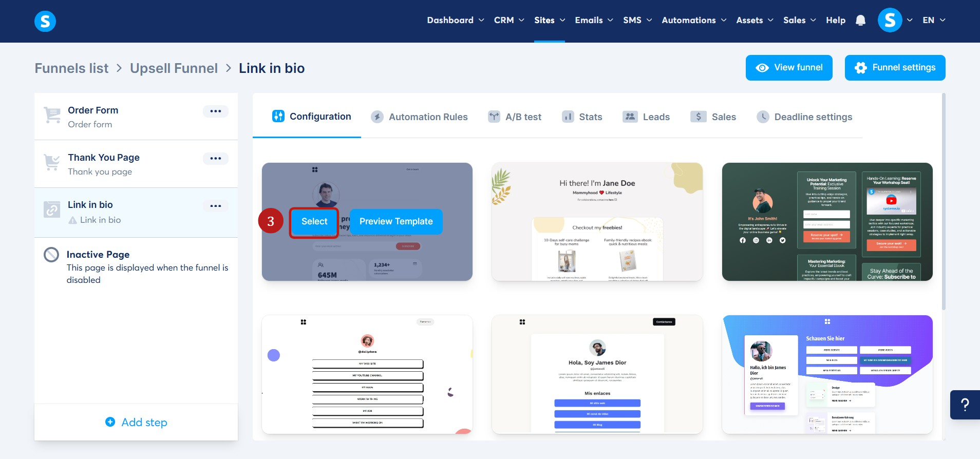 Next, select one of the templates by clicking on Select (3).