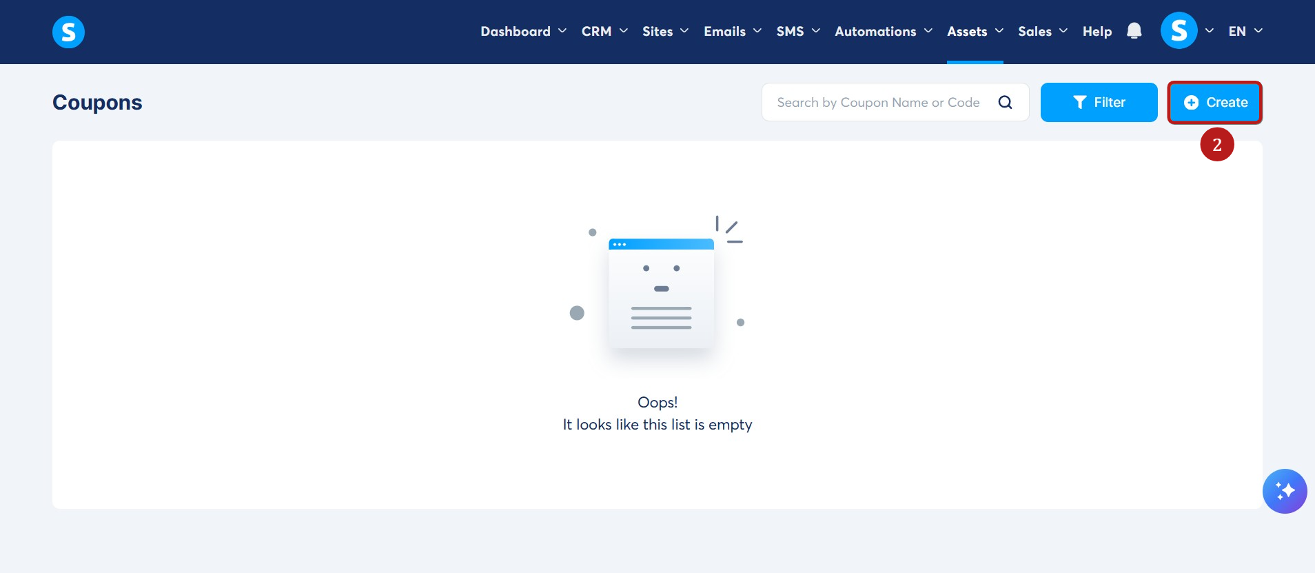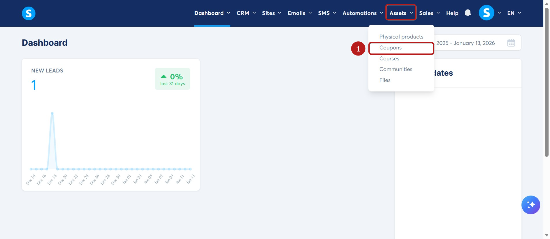Go to the Assets tab and click Coupons (1).