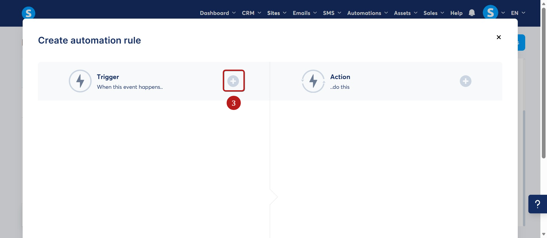 A popup will appear. Click the + icon under "Trigger" to add a new trigger (3).