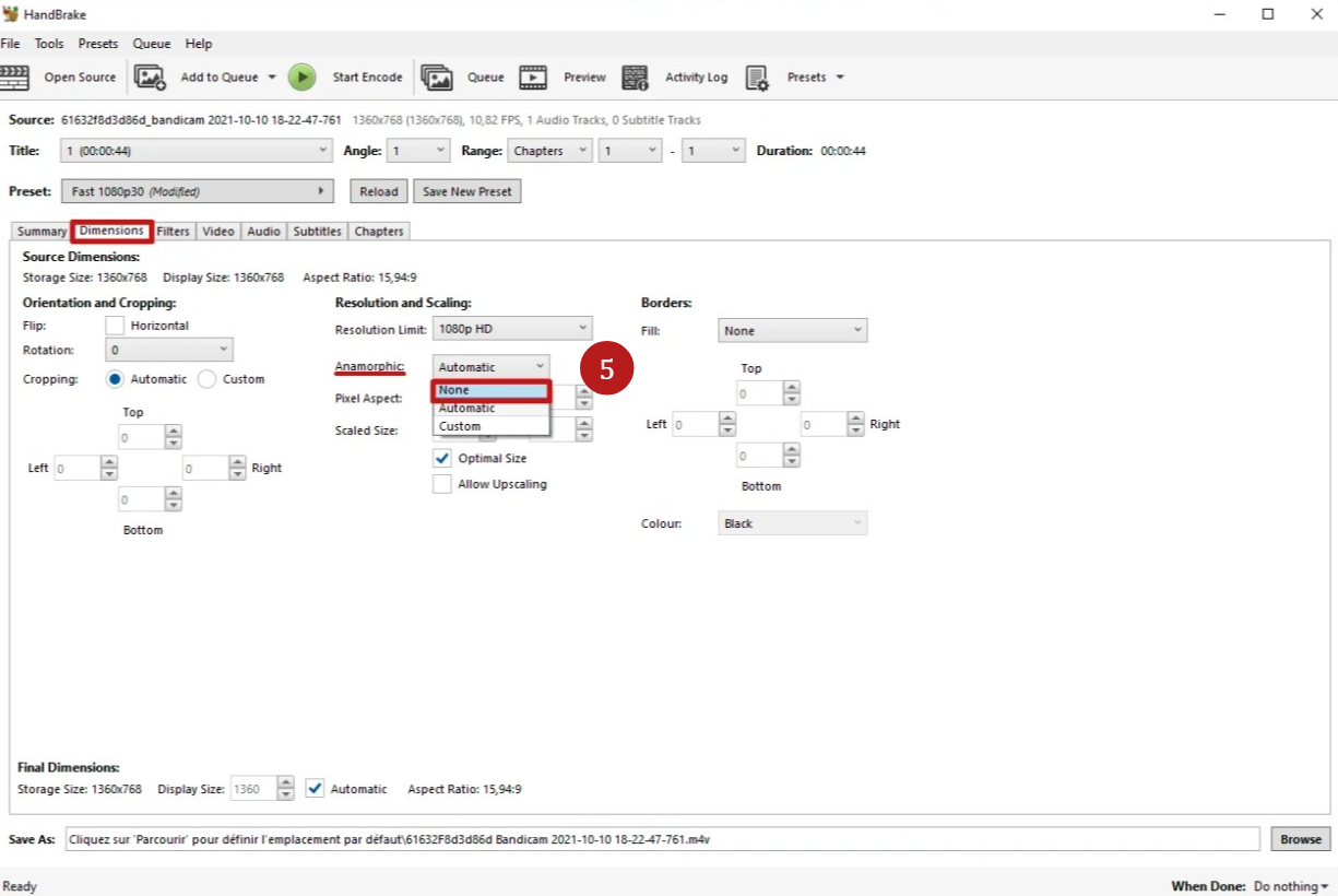 If you want to keep the same dimensions of the video. Go to the Dimensions