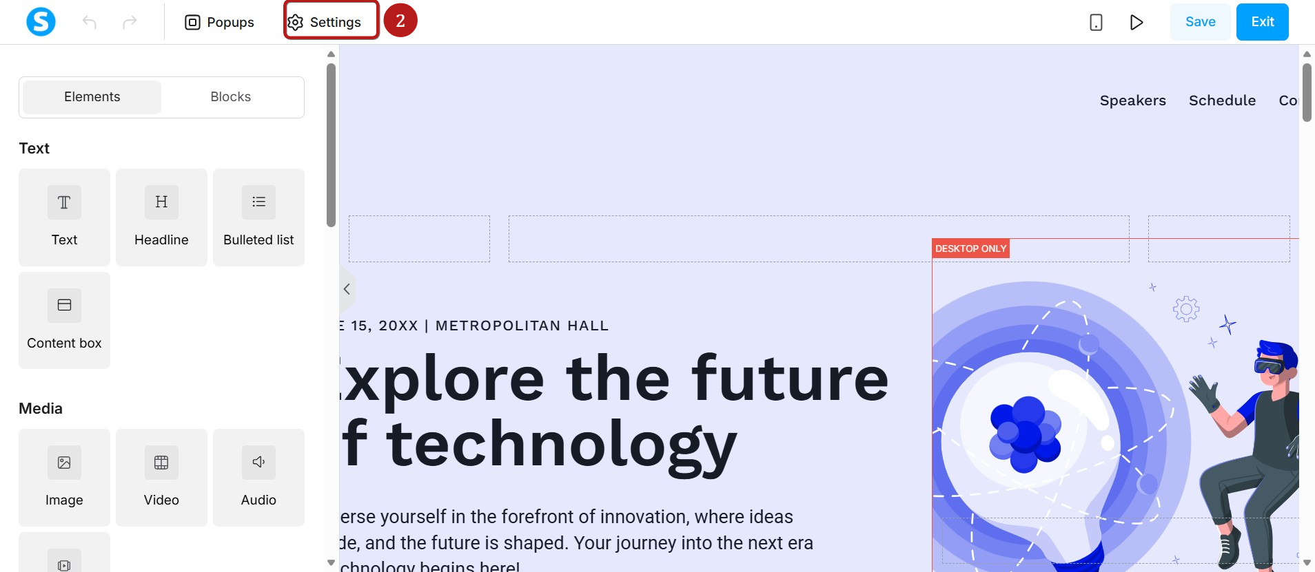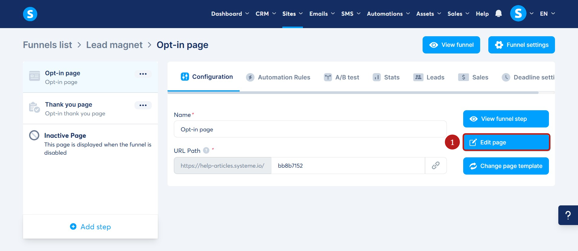 Navigate to your sales funnel and click Edit page (1) to open the editor.