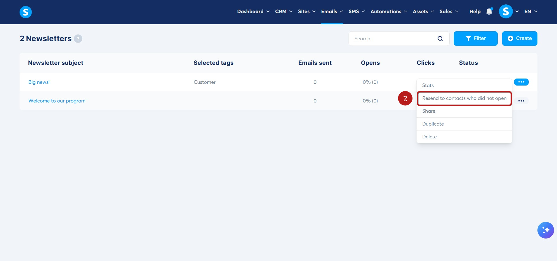 From the dropdown menu, select Resend to contacts who did not open (2).