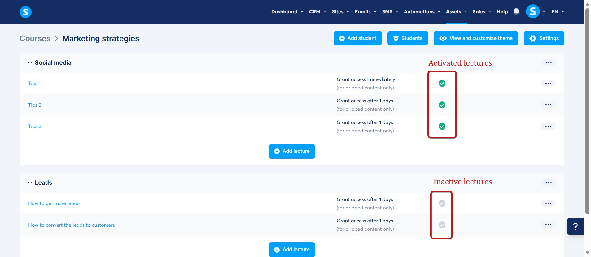 Note: Make sure the lectures are activated.