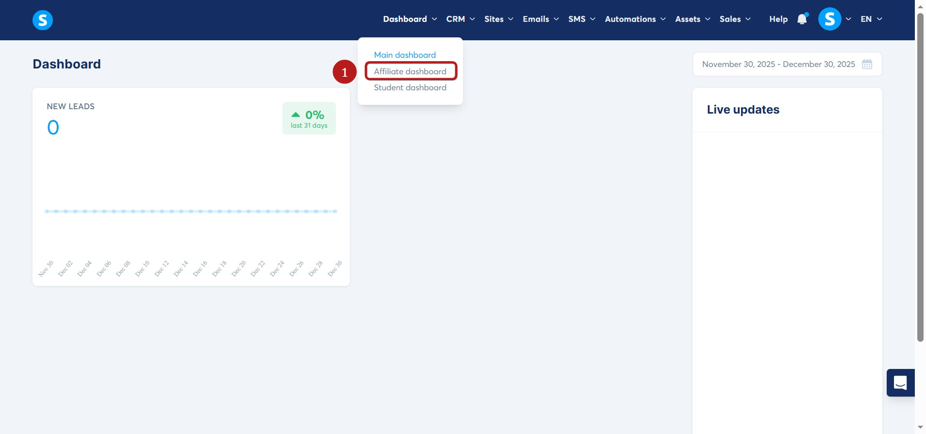 To find your affiliate ID, go to Dashboard then Affiliate Dashboard (1).