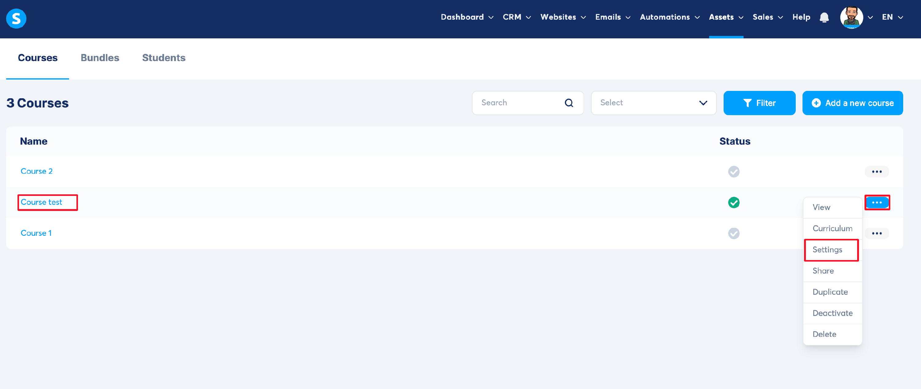 Navigate to the courses section by clicking the "Assets" tab on your dashboard, and then click "Courses".