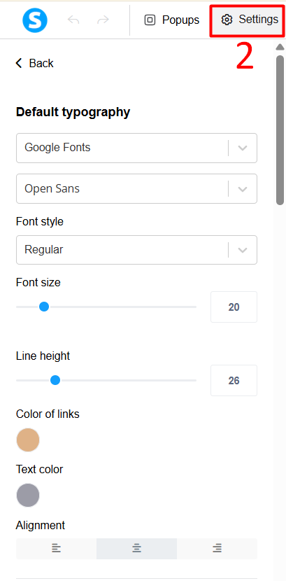 Then click on the "Settings" button to access the page settings. (number 2 in the image)