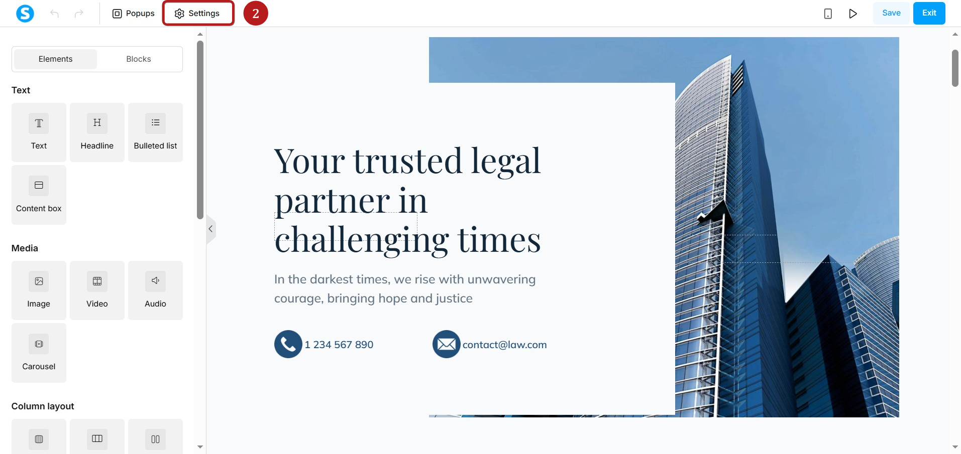 Go to the sales funnel containing your page and open the page editor by clicking on Edit page (1).
