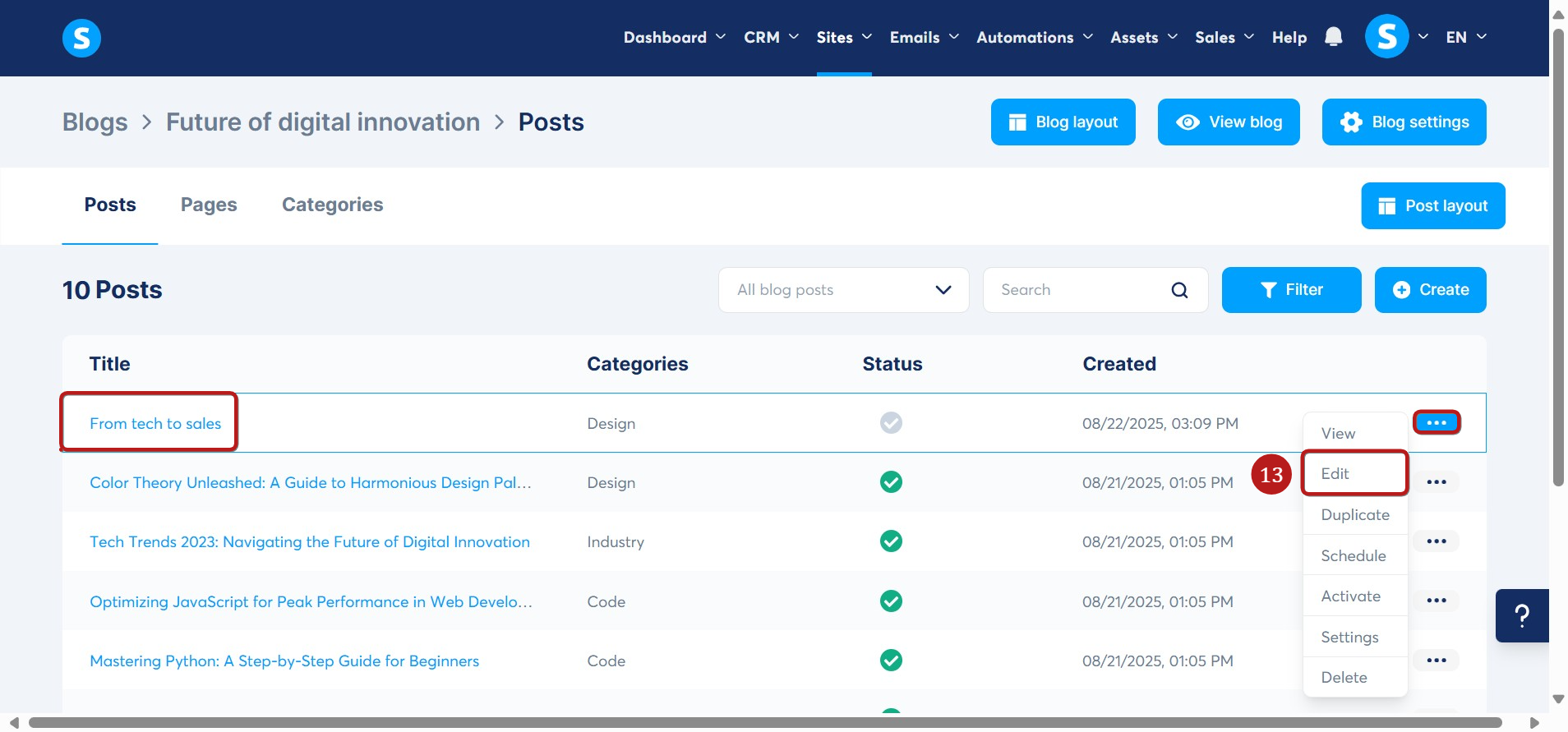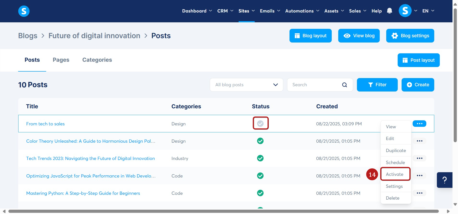This guide will walk you through how to create a blog post using systeme.io.