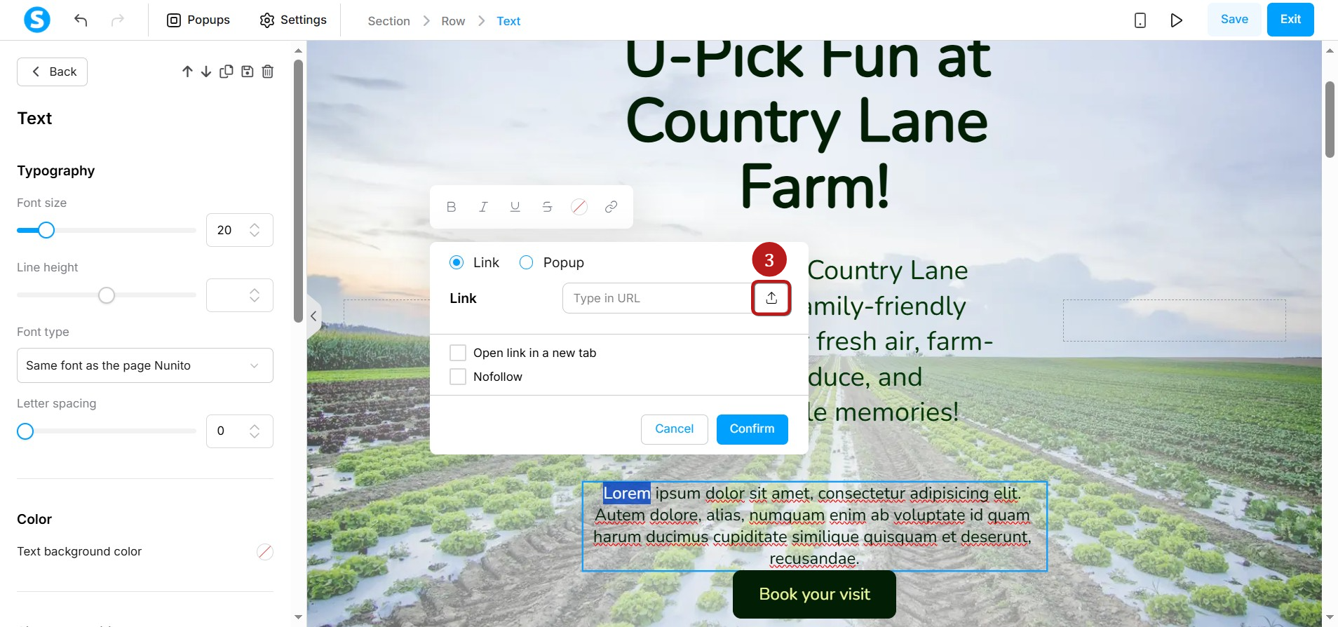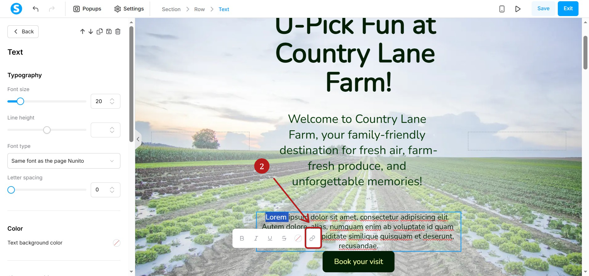 Select the text to convert into a link and click on the link icon (2).
