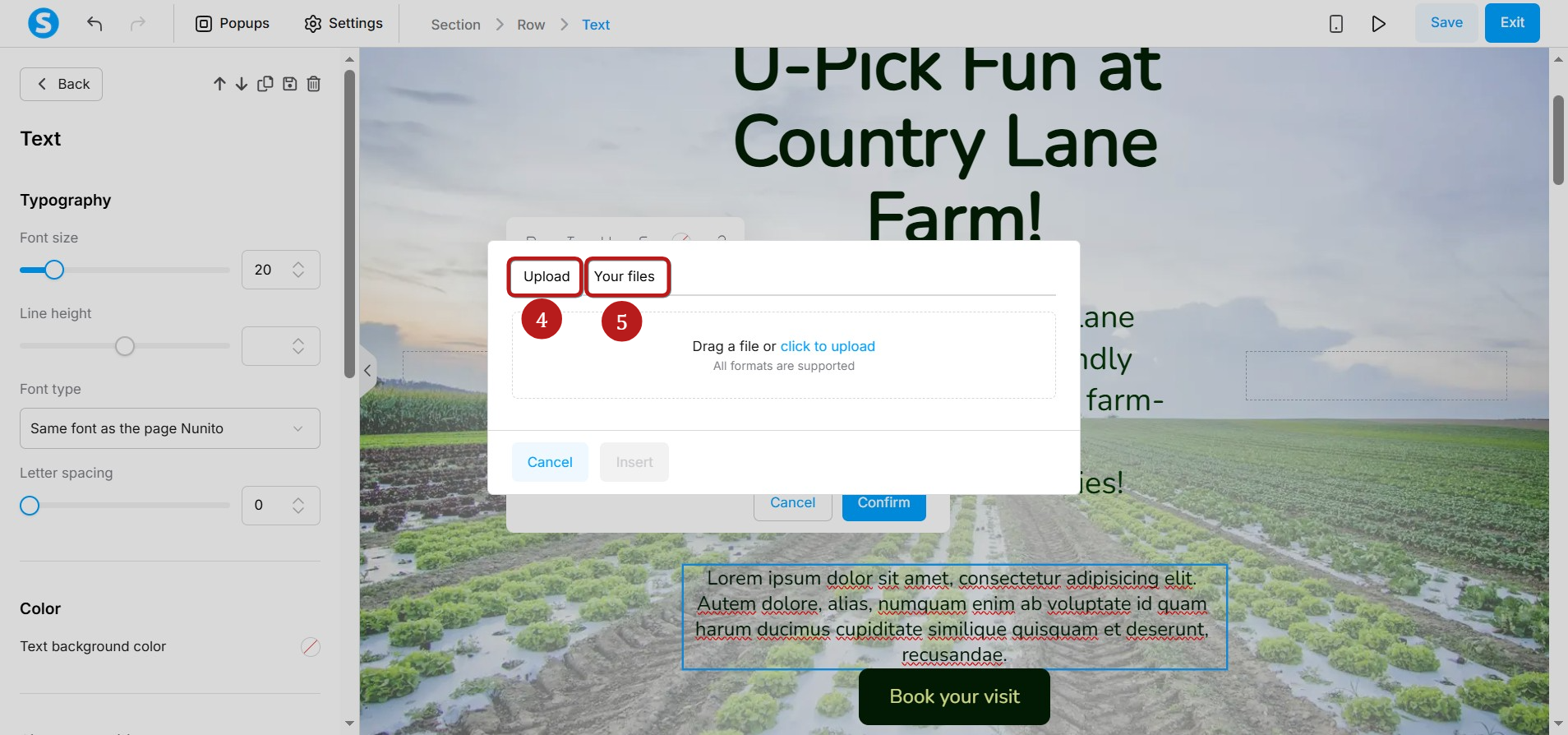 Once you have selected the file, click Insert (6) to link it to your text.