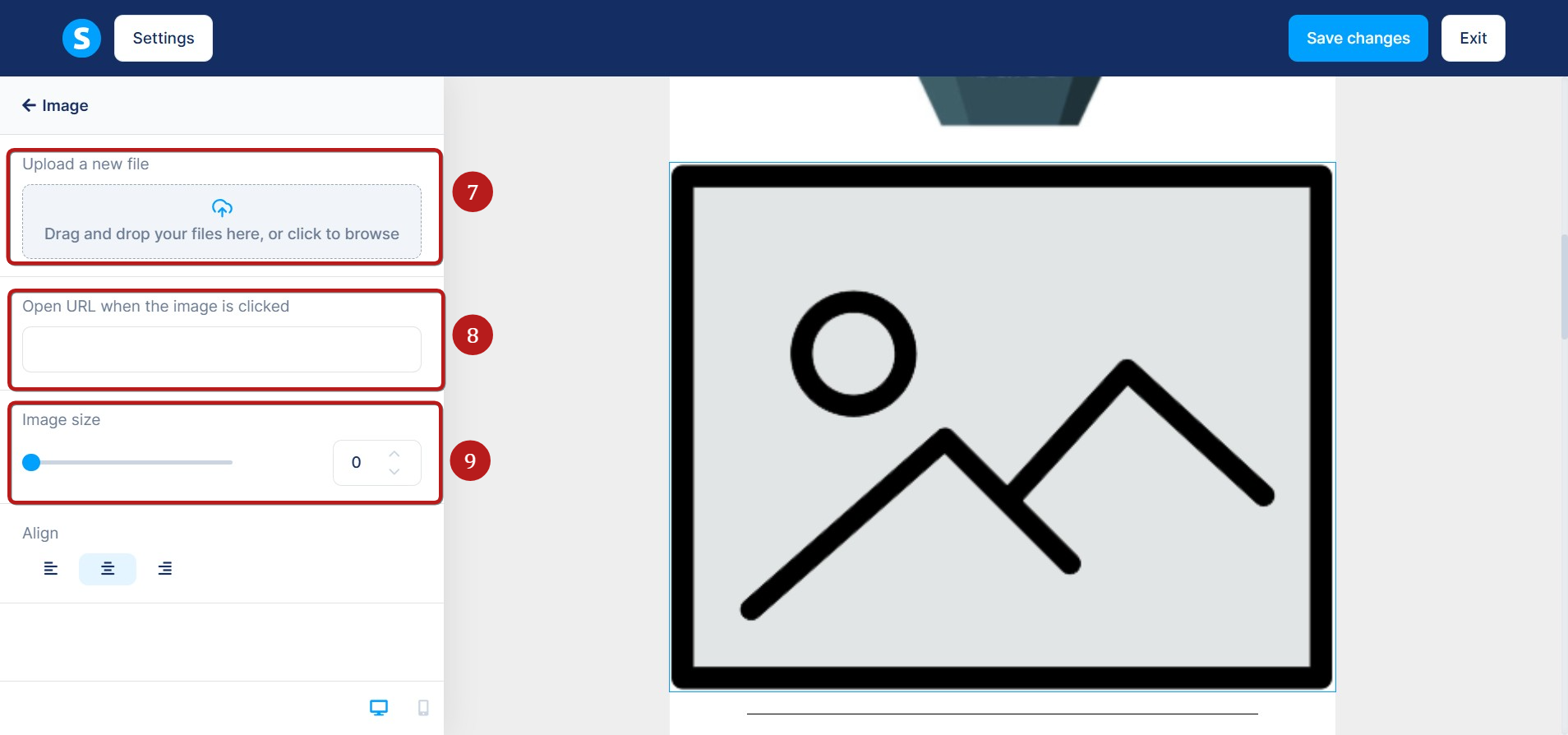 - Change the alignment (inline, centered, left, or right)