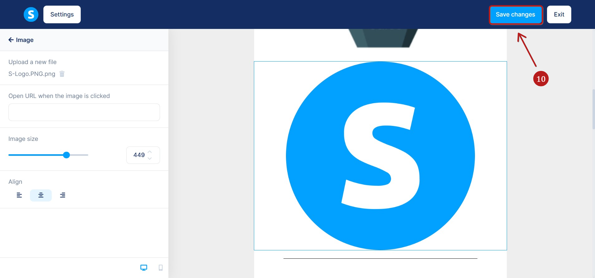 Finally, click Save changes in the email editor (10).