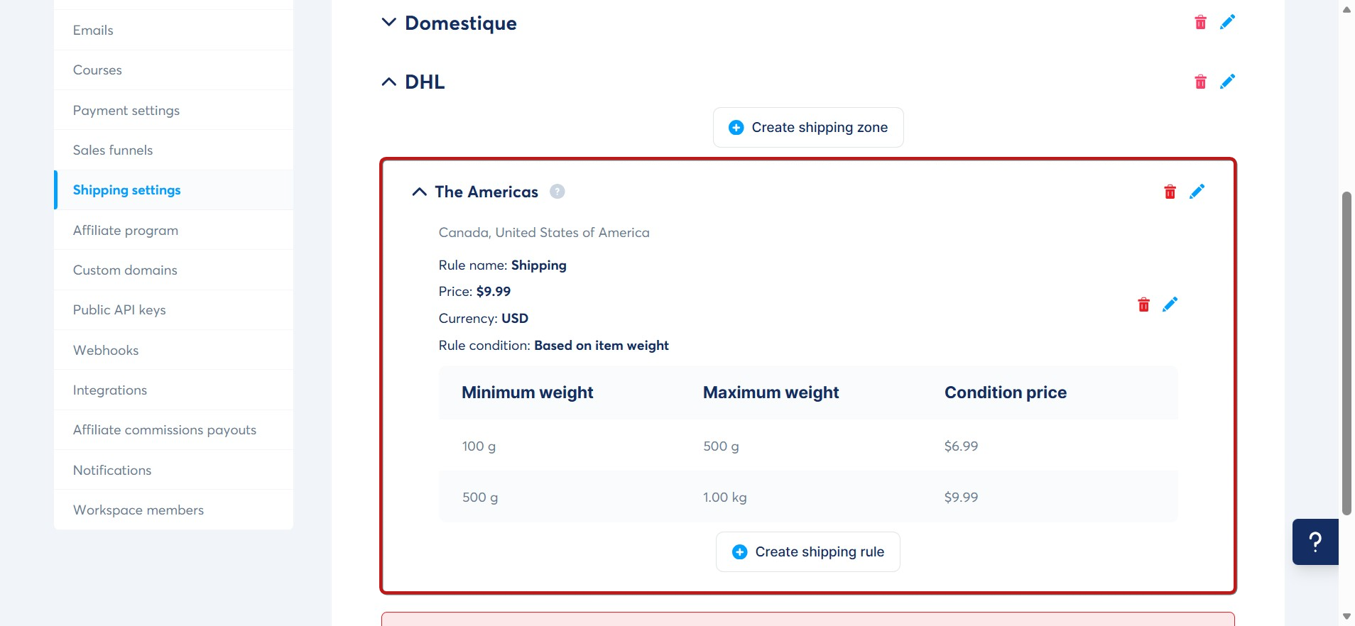 You will now see the shipping zone you created, along with the details of the delivery rule.