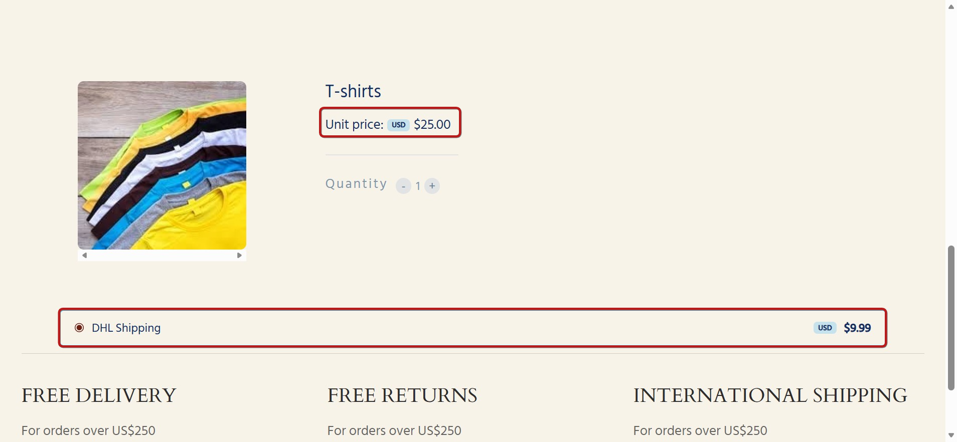 This will automatically display the applicable shipping rules based on the product specifications, allowing the customer to choose from the available shipping methods