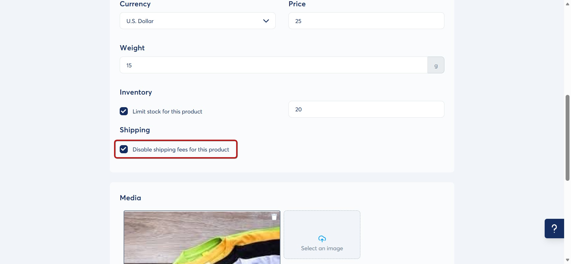 Important: To disable shipping fees for a certain physical product, simply check the box Disable shipping fees for this product in the physical product settings.